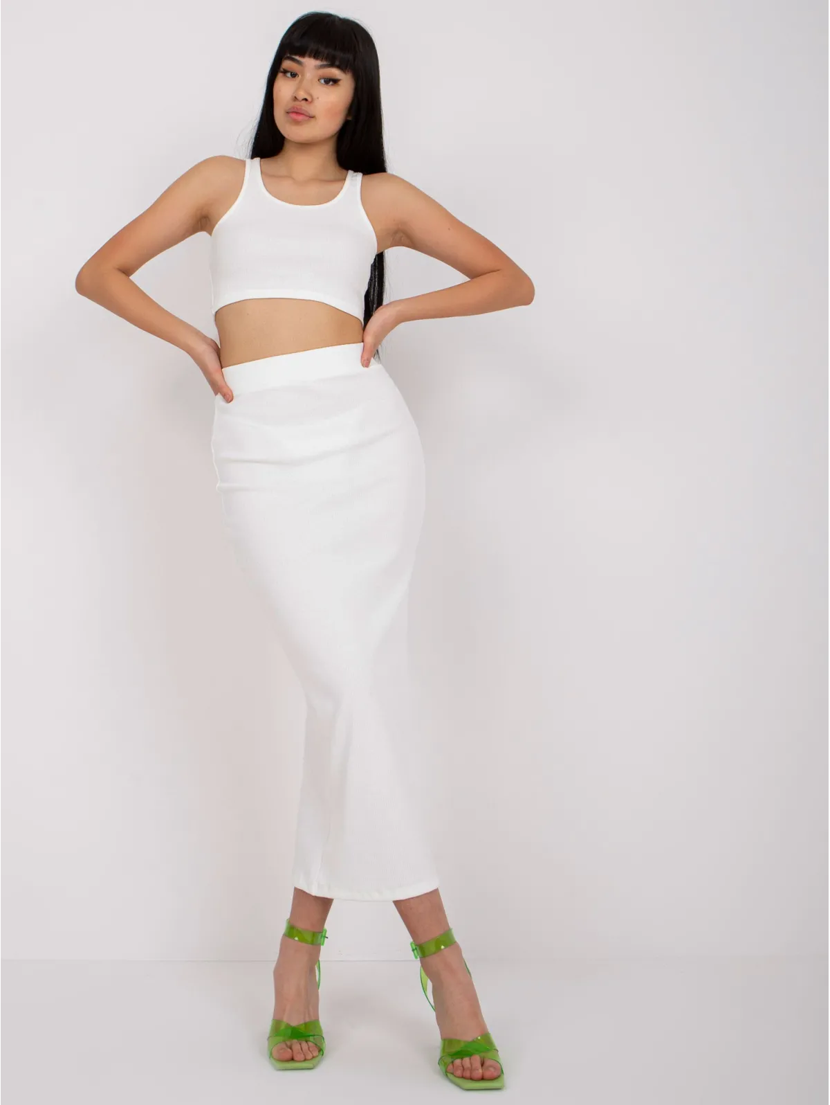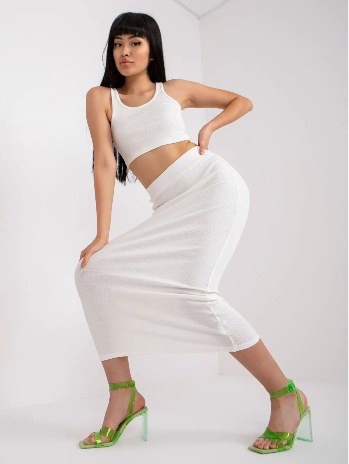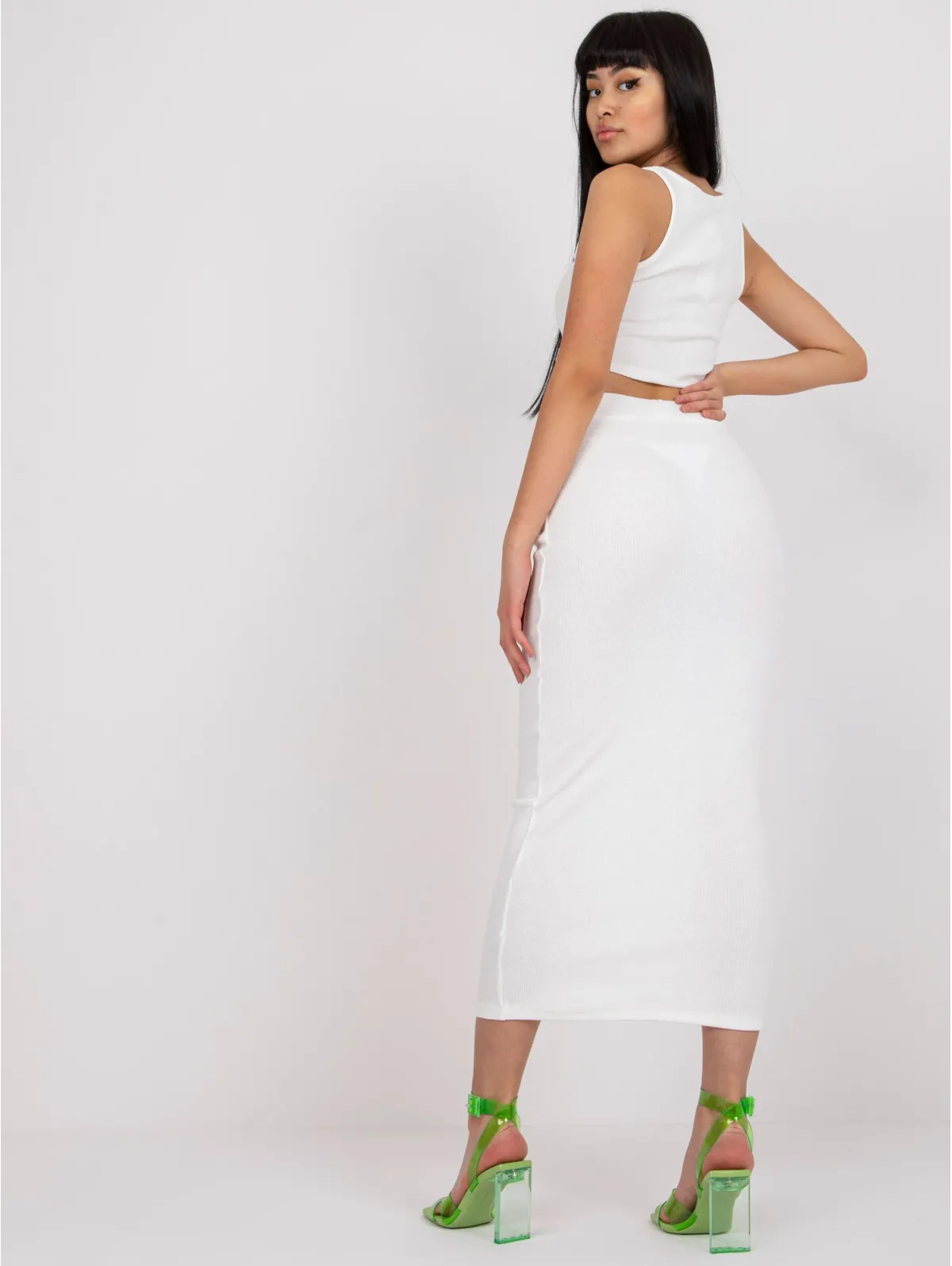 Laisvalaikio kostiumo S dydžio išmatavimai: palaidinės krūtinė - 30 cm, palaidinės ilgis - 36 cm, sijono plotis ties juosmeniu - 34 cm, sijono ilgis - 91 cm.