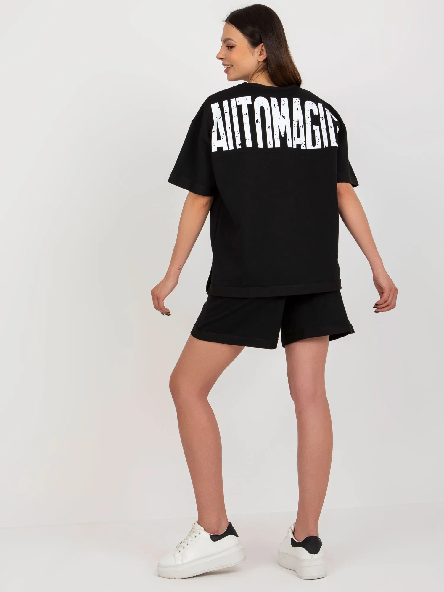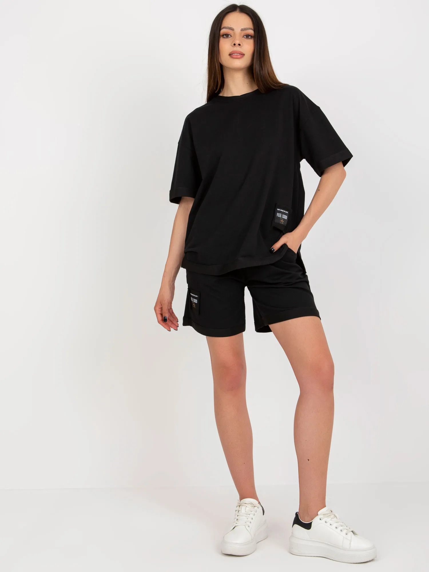Laisvalaikio kostiumo S dydžio išmatavimai: palaidinės krūtinės plotis - 60 cm, palaidinės ilgis - 64 cm, šortų plotis ties juosmeniu - 35 cm, aukštis nuo klyno iki liemens iki klyno - 30 cm, šortų ilgis - 43 cm.