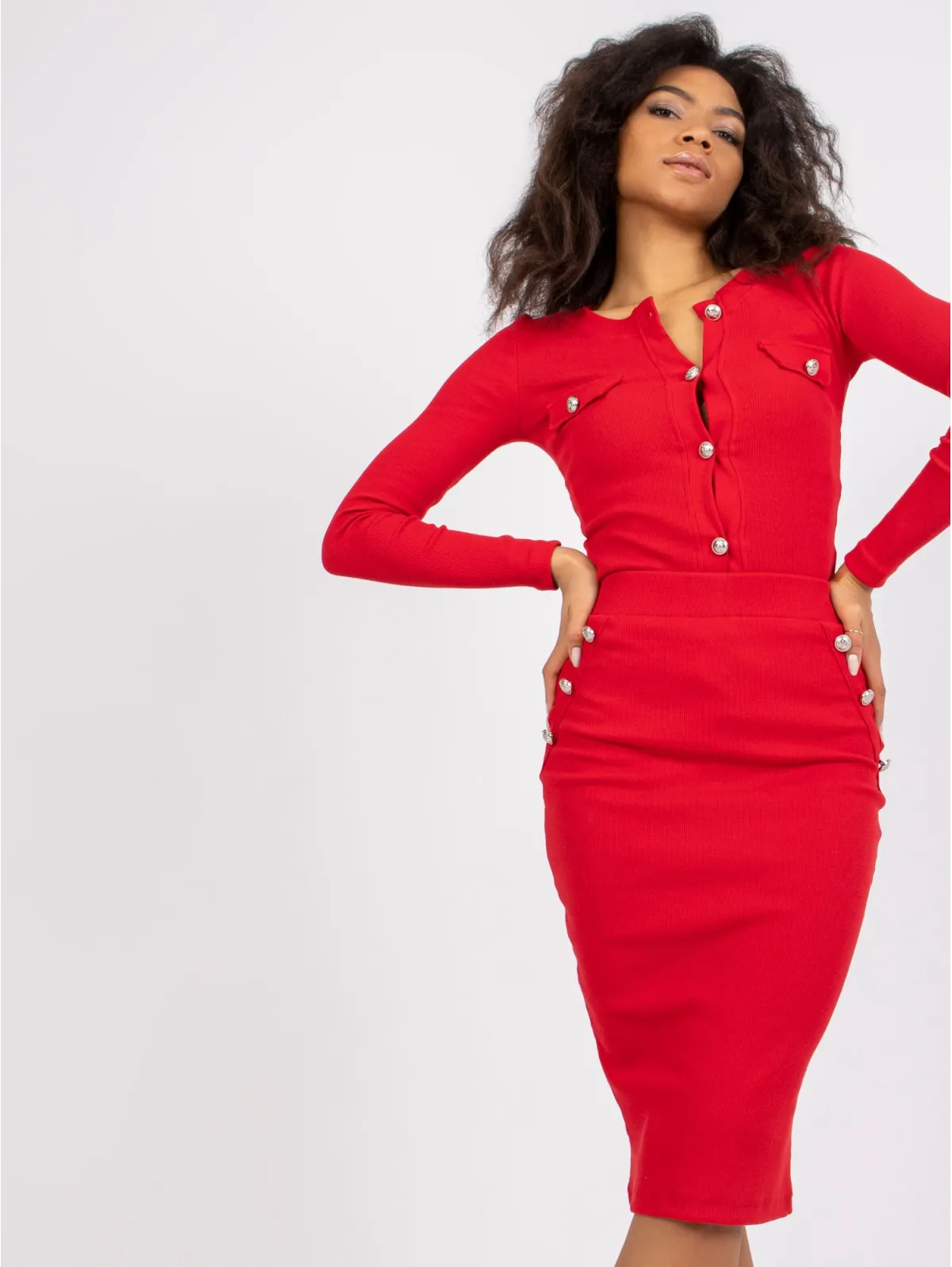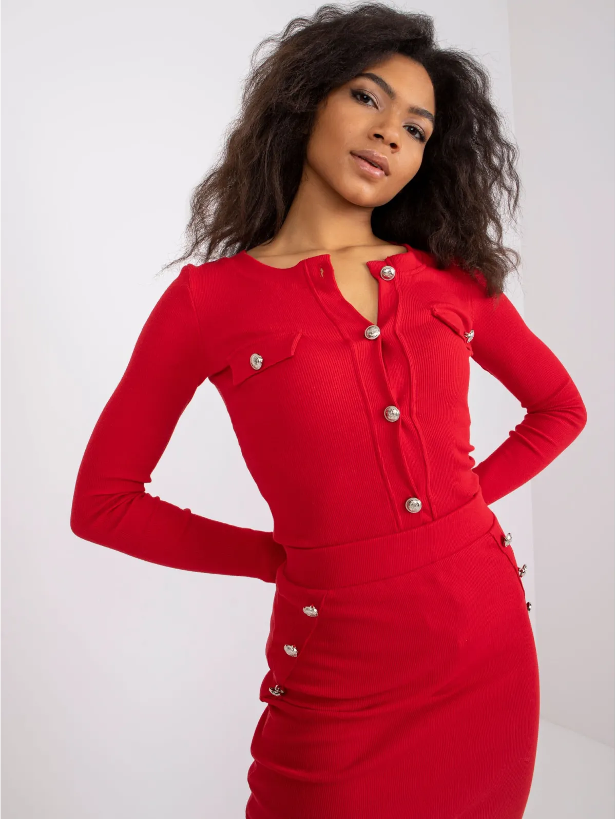 Komplektą sudaro: bluzkę, sijonas