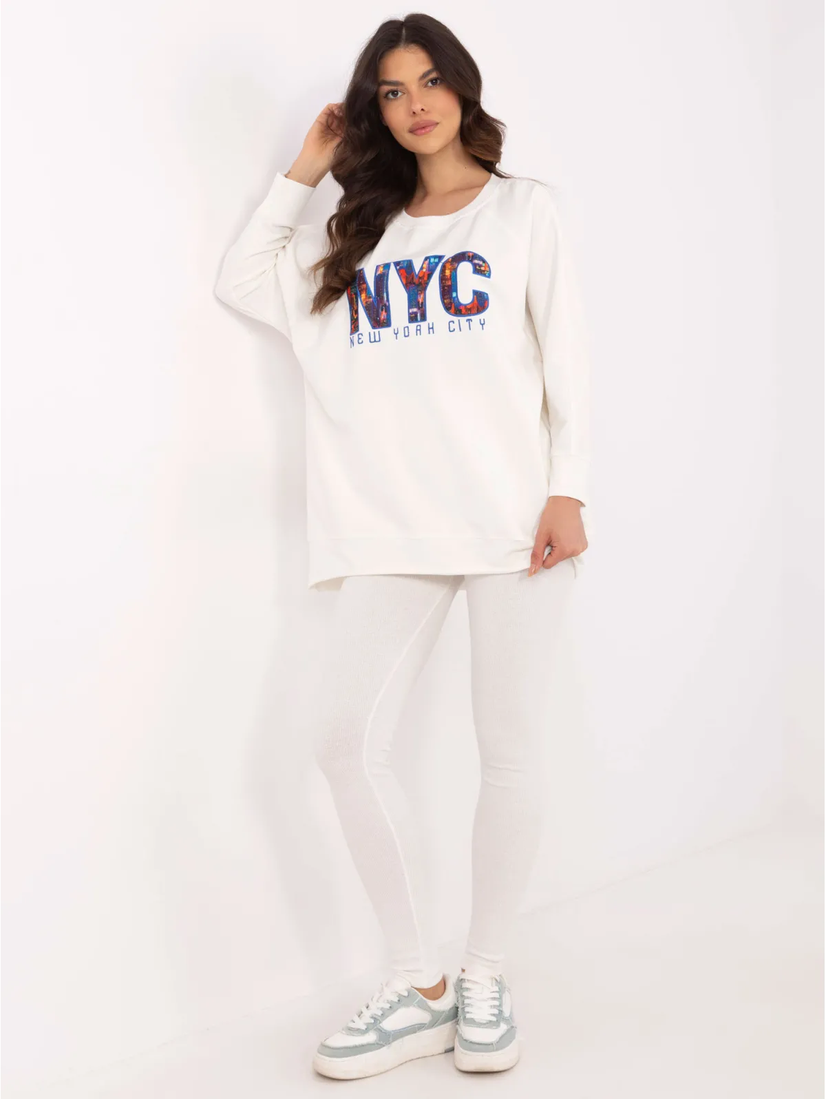 Vieno dydžio megztinio matmenys išmatuoti plokščiai: megztinio plotis po pažastimis - 68 cm, rankovių ilgis - 58 cm, megztinio ilgis - 80 cm.