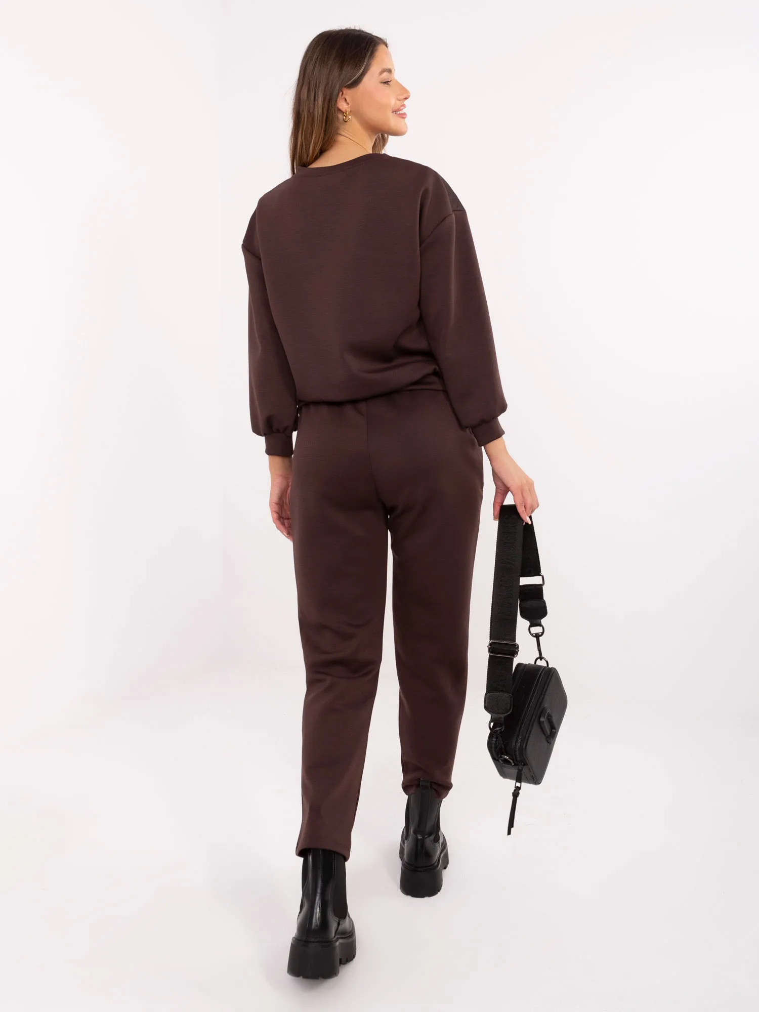 Komplekto matmenys vieno dydžio: plotis po pažastimis - 55 cm, megztinio ilgis - 62 cm, rankovių ilgis - 47 cm (nuo siūlės), plotis apačioje - 47 cm, kelnių plotis ties juosmeniu - 34 cm (ištiesus plokščiai), kelnių plotis ties juosmeniu - 52 cm (po tempimo), klubų plotis - 51 cm, kelnių ilgis - 95 cm.