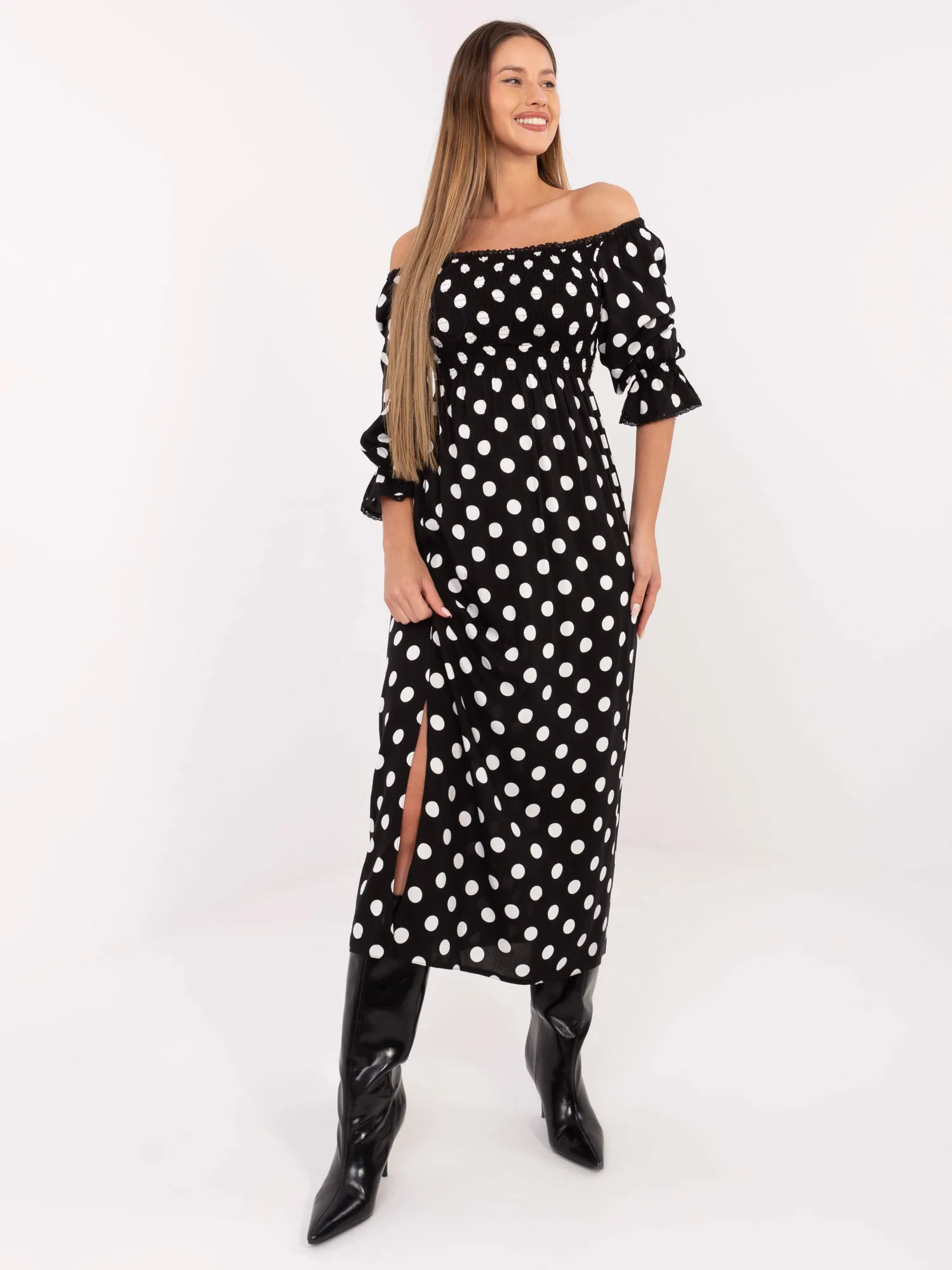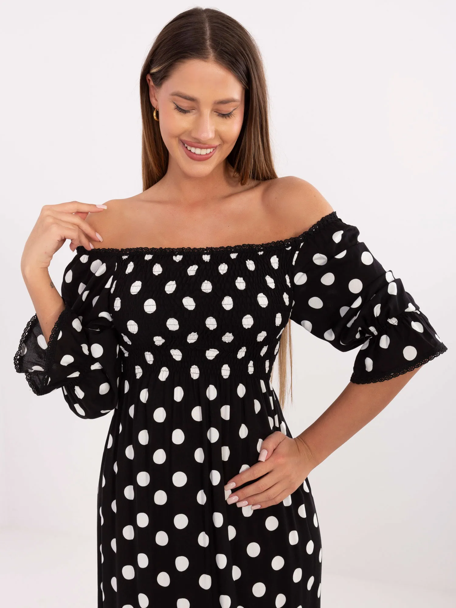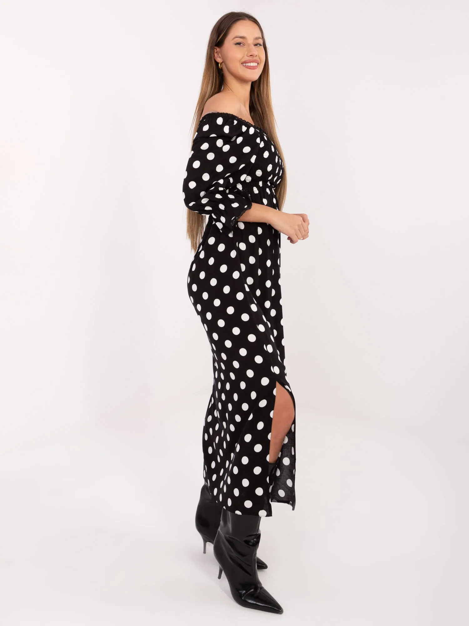 Wymiary sukienka w rozmiarze S/M: szerokość pod pachami - 19 cm (na płasko), szerokość pod pachami - 51 cm (po rozciągnięciu), szerokość w talii - 18 cm (na płasko), szerokość w talii - 51 cm (po rozciągnięciu), szerokość w biodrach - 56 cm, długość rękawa - 48 cm, długość całkowita - 127 cm .