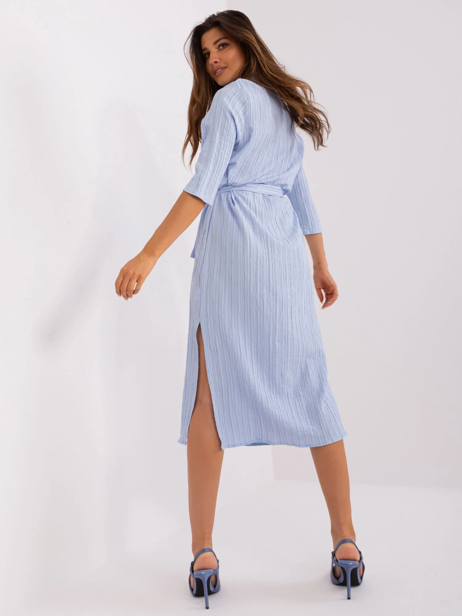 Jasnoniebieska sukienka na co dzień z wiskozy .