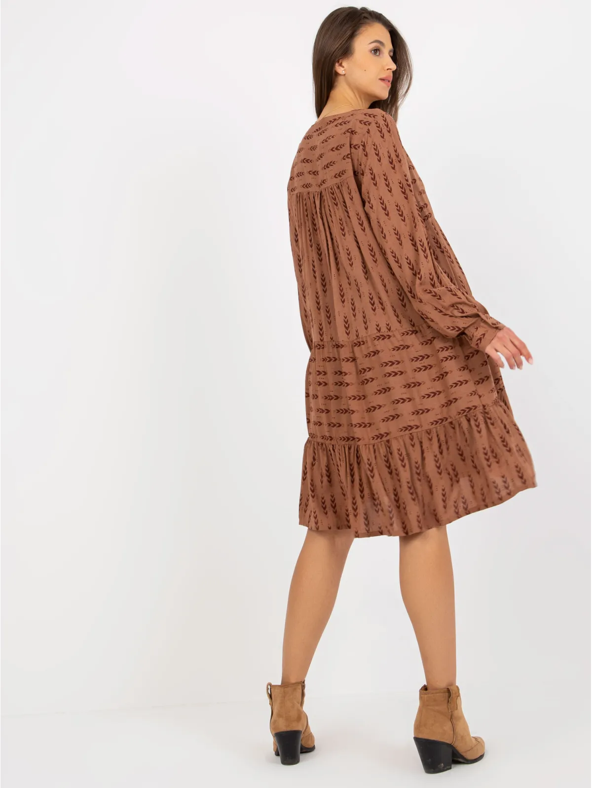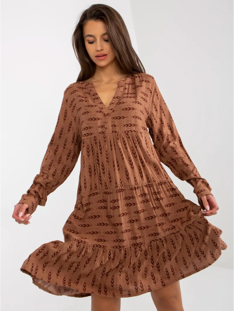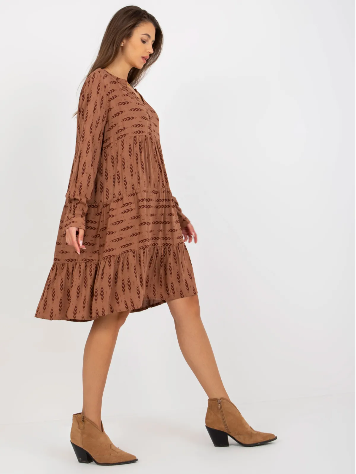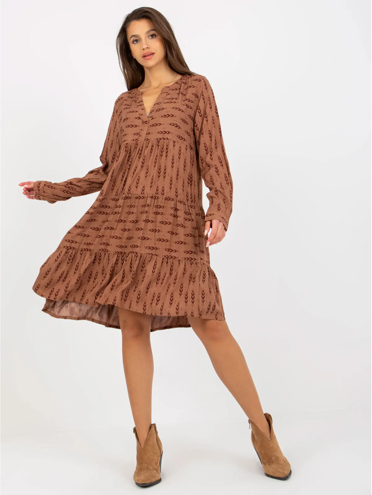 Ruda laisva suknelė su raštais ir raukiniais SUBLEVEL .