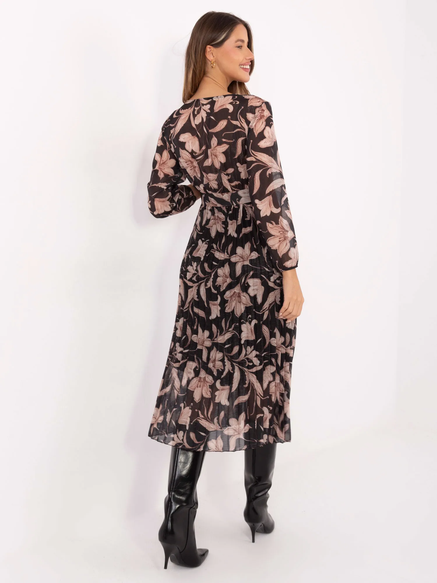 Suknelės matmenys vieno dydžio, matuojant plokščiai: plotis po pažastimis - 45 cm, rankovių ilgis - 55 cm, juosmens plotis - 31 cm, klubų plotis - 53 cm, bendras ilgis - 123 cm.