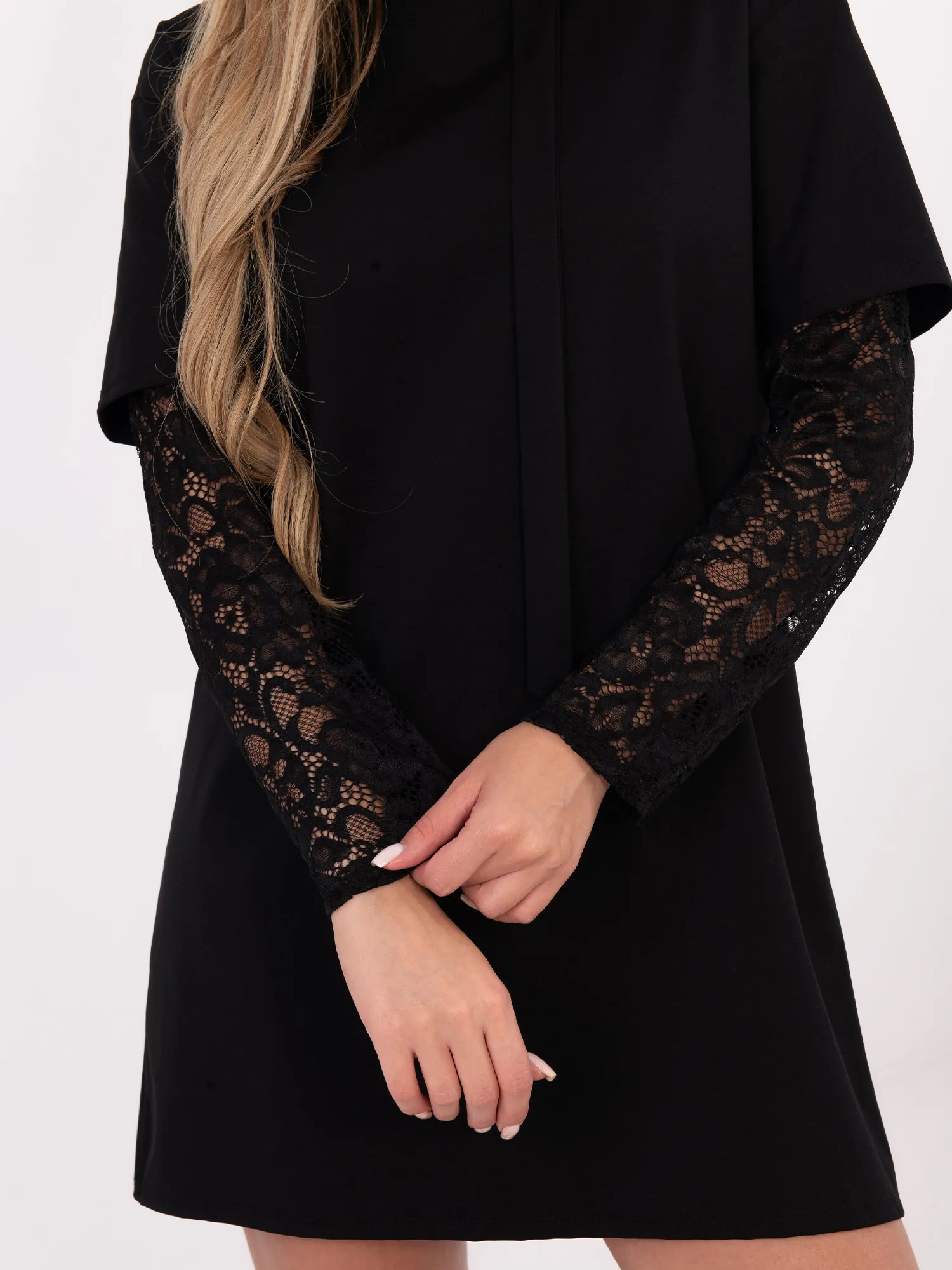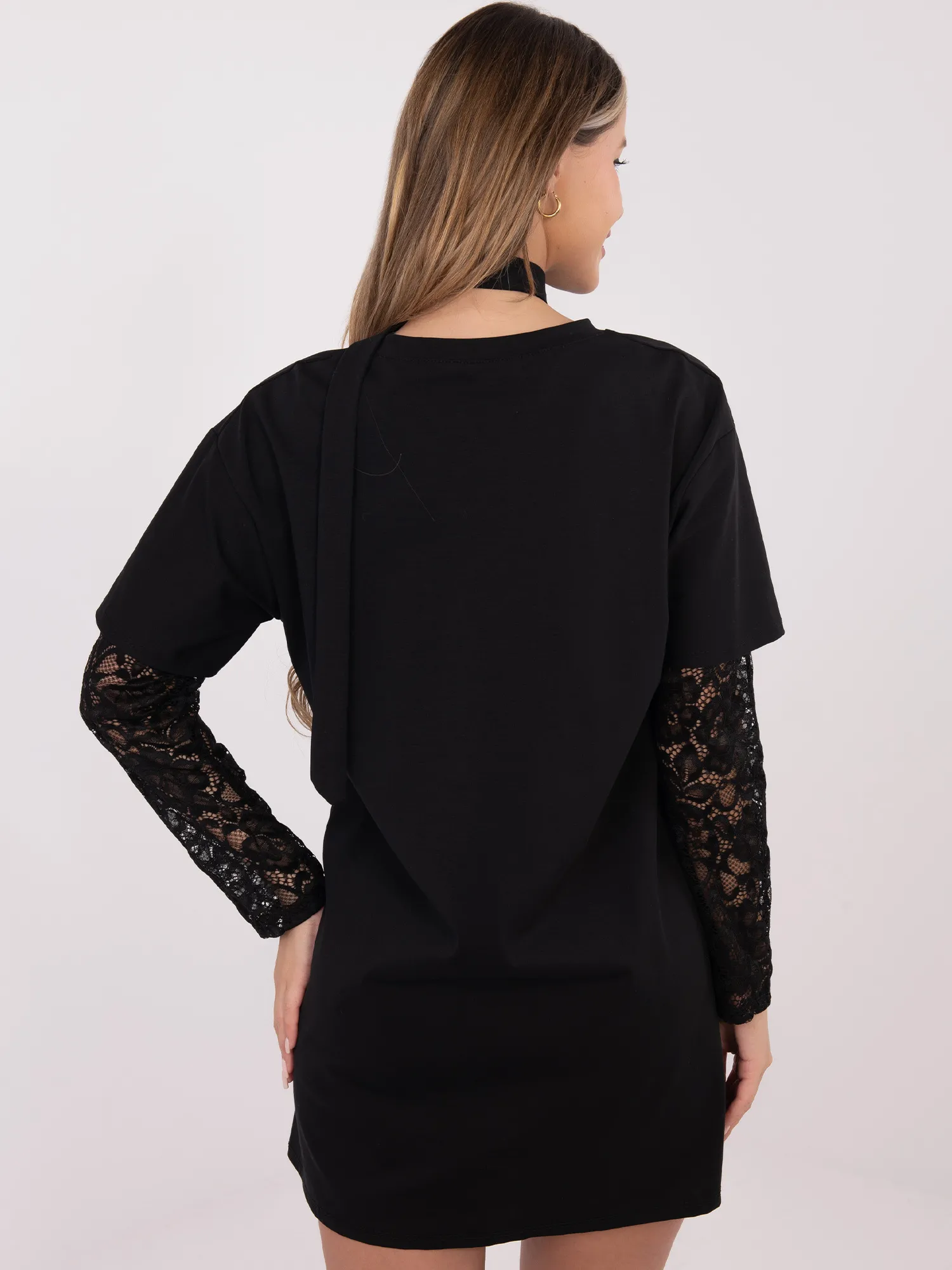 Suknelės matmenys vieno dydžio, matuojant plokščiai: plotis po pažastimis - 56 cm, plotis ties klubais - 59 cm, plotis ties juosmeniu - 57 cm, bendras ilgis - 82 cm, rankovių ilgis - 54 cm (nuo siūlės).