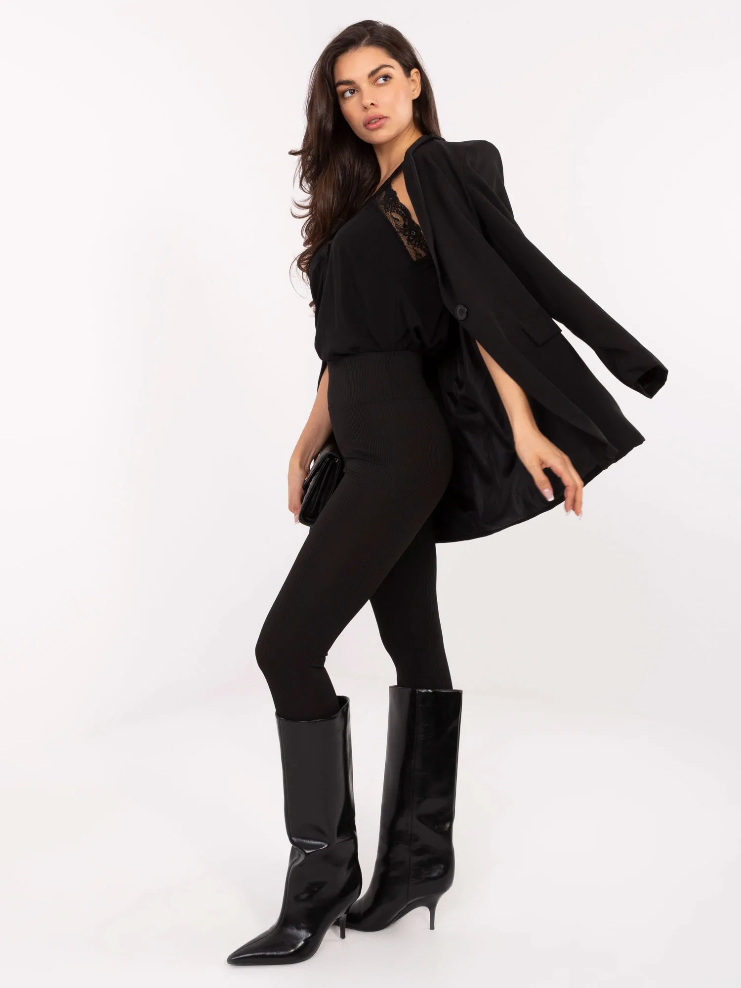 Modelis dėvi S dydį. Modelio išmatavimai: ūgis 175 cm, krūtinės apimtis 90 cm, juosmuo 66 cm, klubai 94 cm.