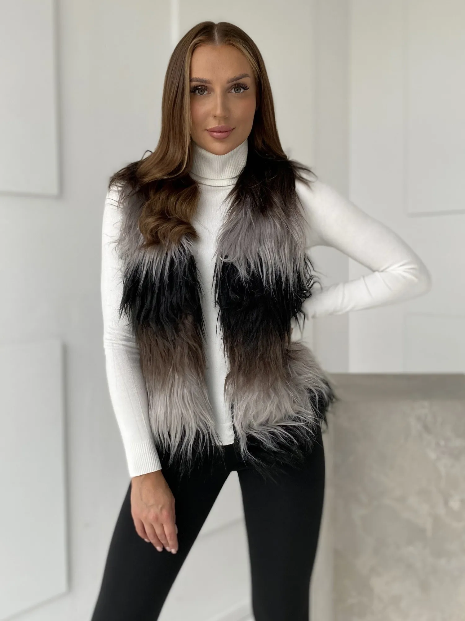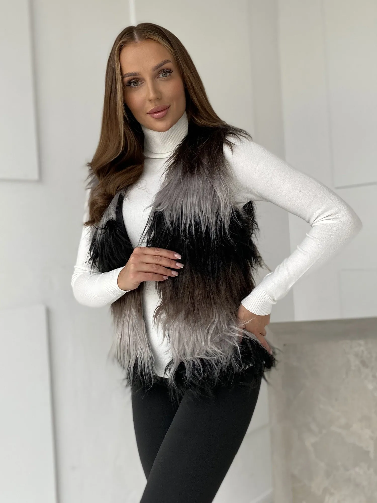 S dydžio liemenės matmenys, išmatuoti plokščiai: plotis po pažastimis - 45 cm, bendras ilgis - 58 cm