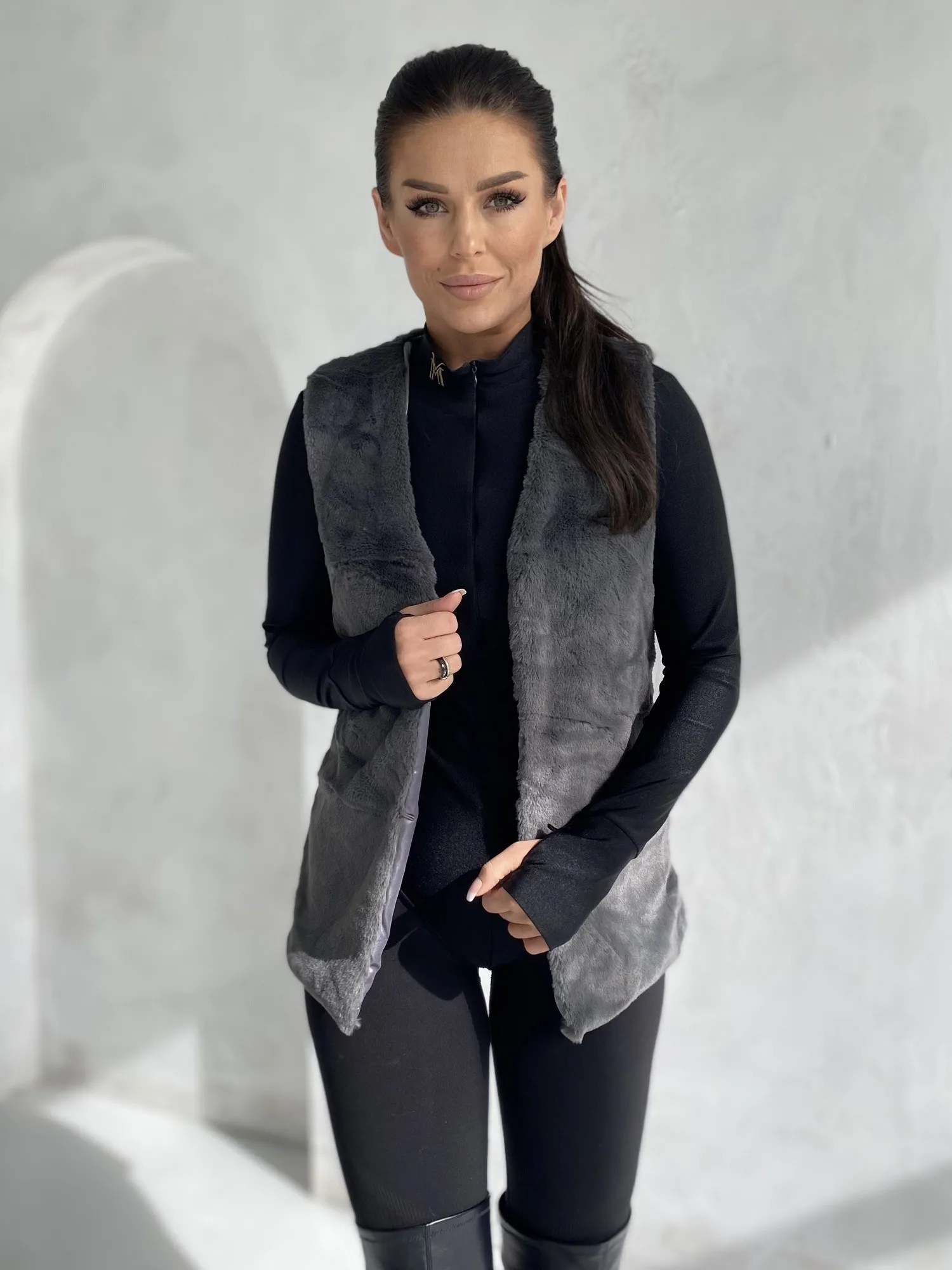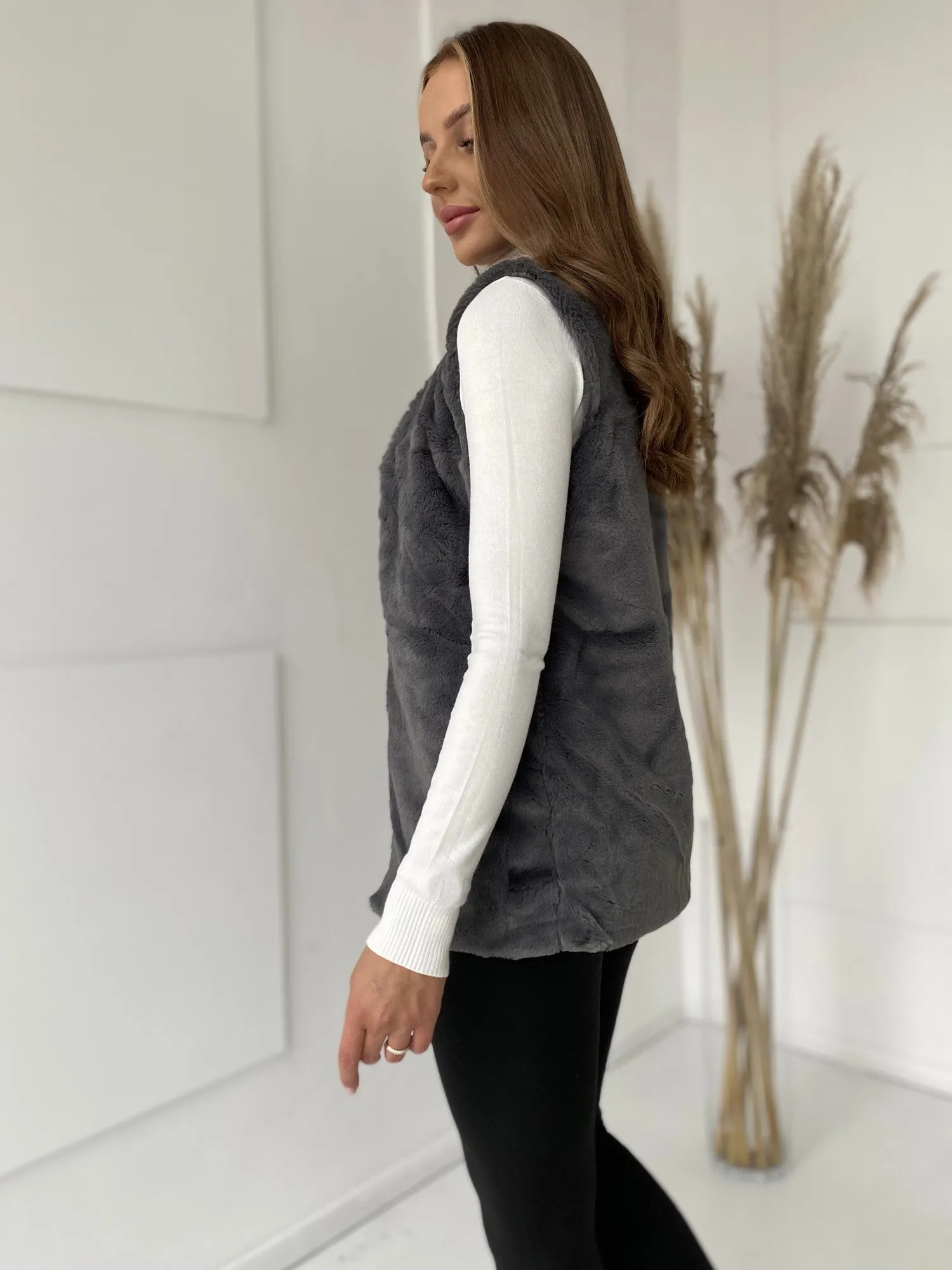 S dydžio liemenės matmenys, išmatuoti plokščiai: plotis po pažastimis - 44 cm, bendras ilgis - 67 cm