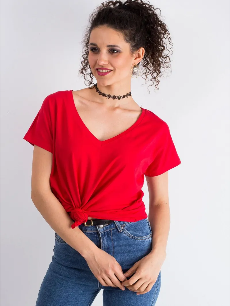 Bawełniany t-shirt V-neck czerwony.