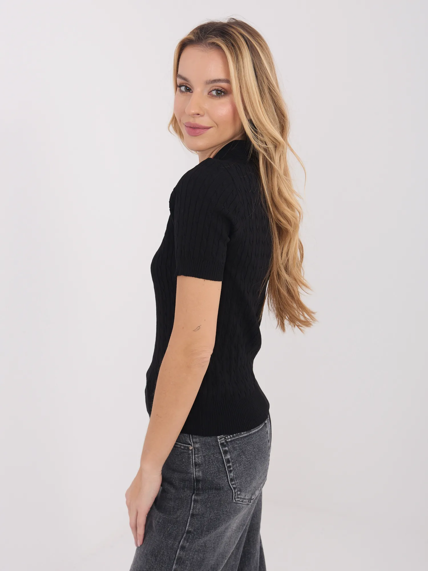 Megztinio vieno dydžio matmenys, išmatuoti plokščiai: plotis po pažastimis - 38 cm, plotis ties klubais - 31 cm, rankovių ilgis - 22 cm (nuo siūlės), bendras ilgis - 56 cm (tampri medžiaga).