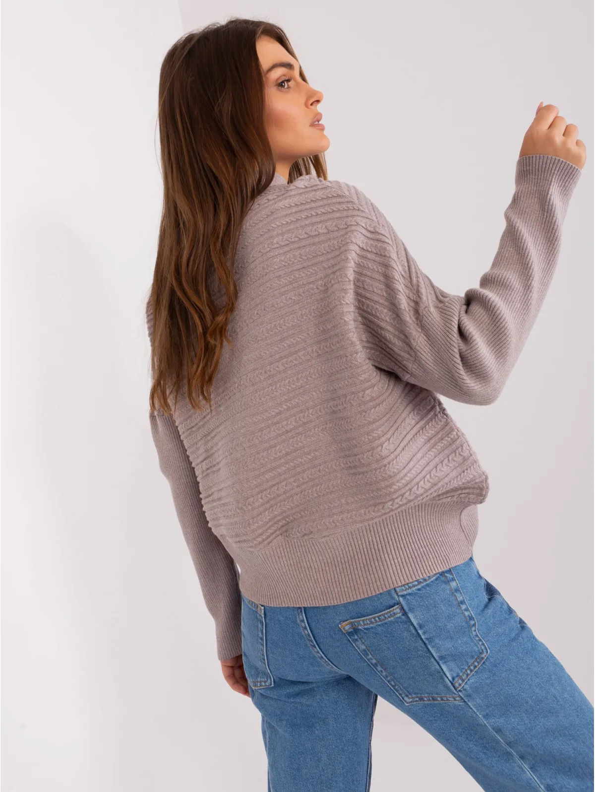Megztinio one size dydžio išmatavimai: krūtinė - 65 cm, rankovių ilgis - 60 cm, bendras ilgis (prawy bok) - 52 cm, bendras ilgis (lewy bok) - 63 cm .