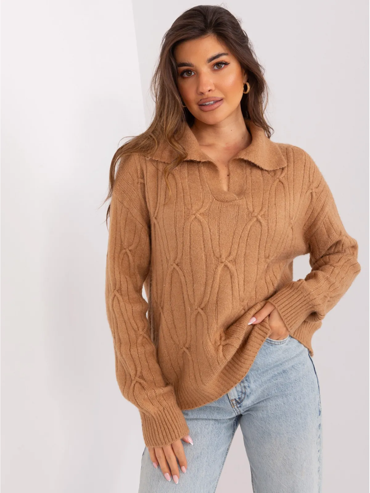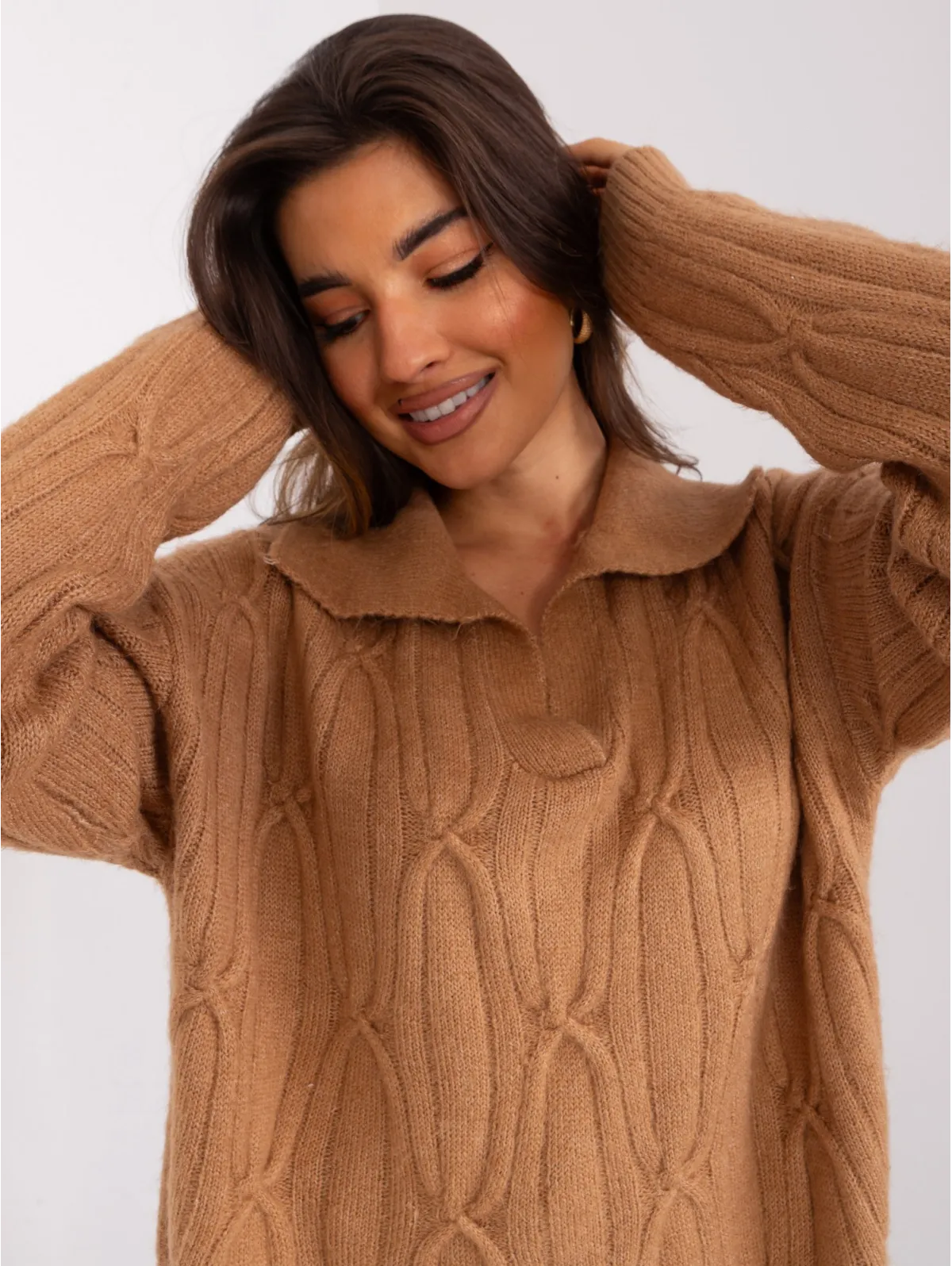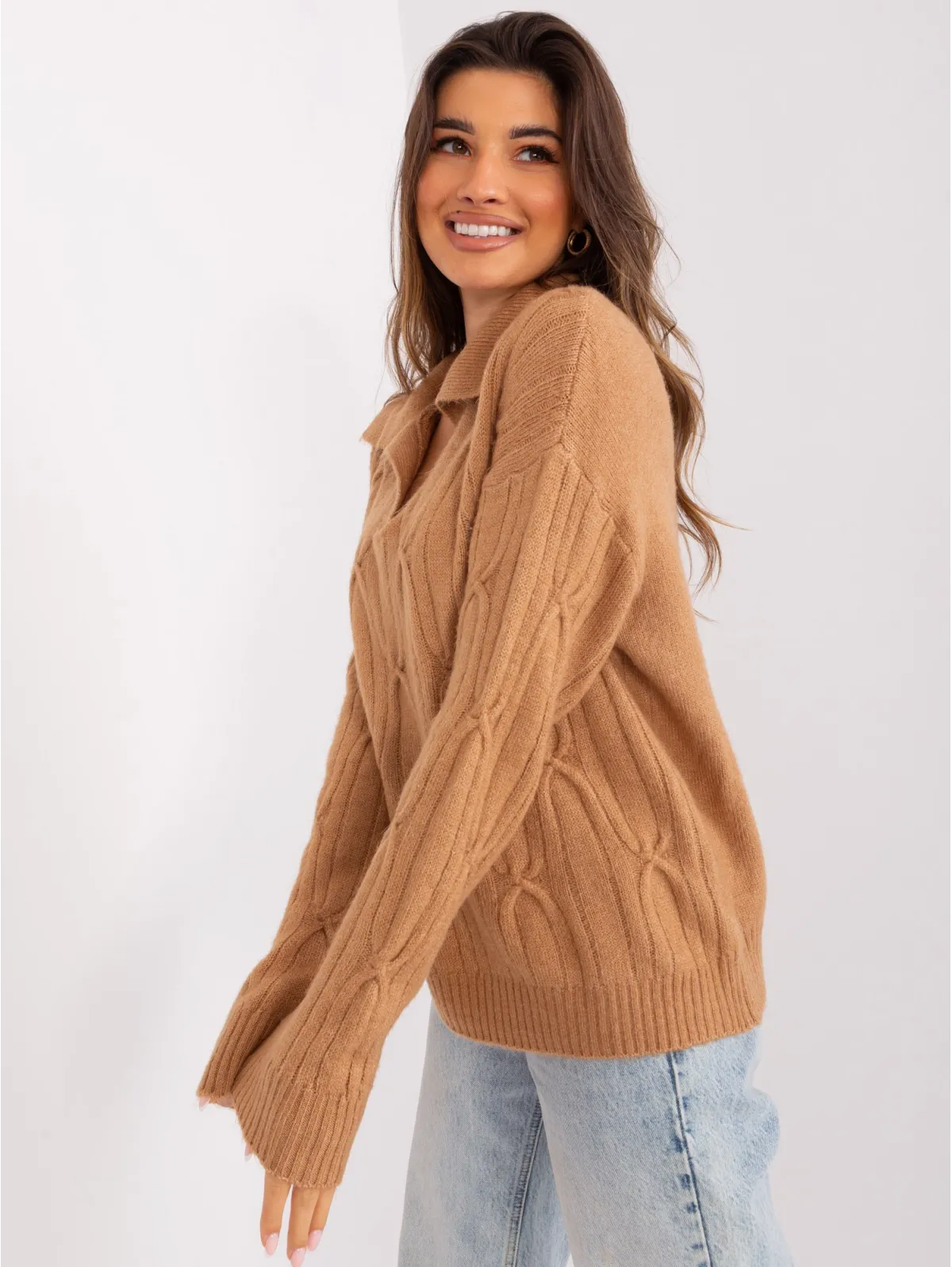 Moteriškas megztinis su apykakle