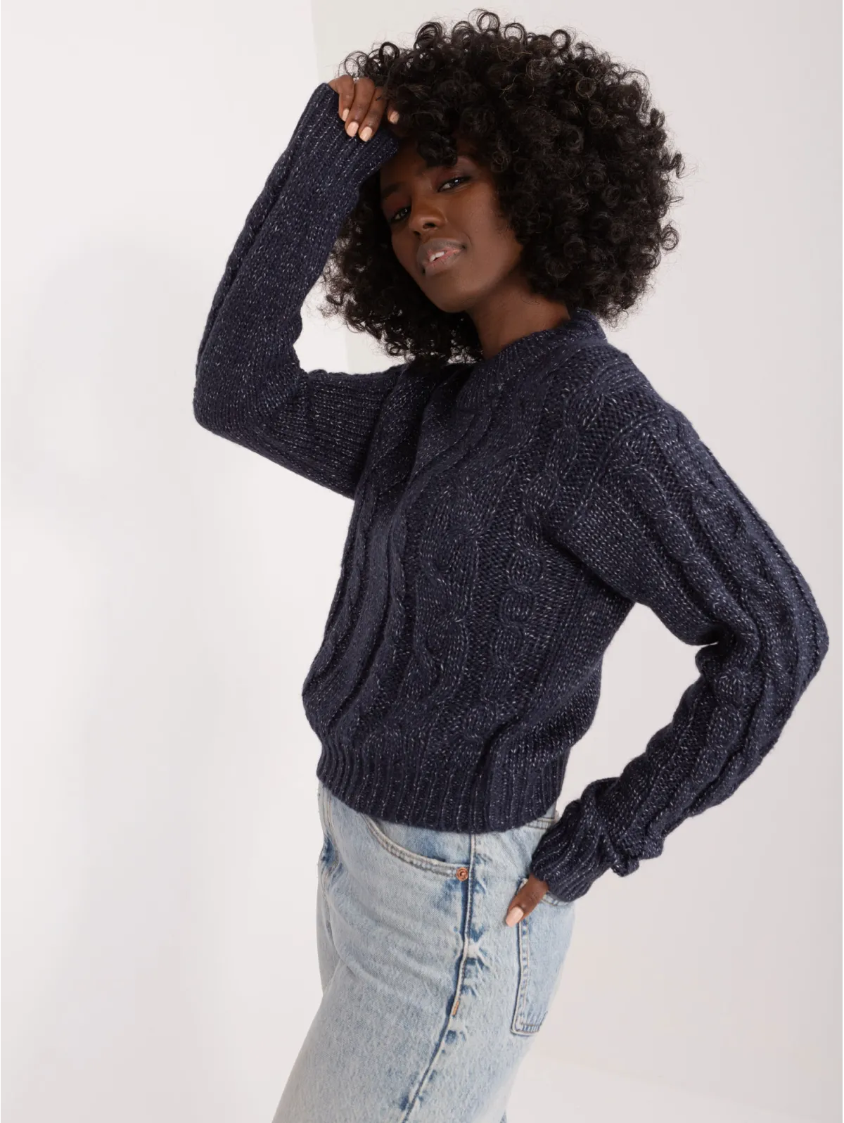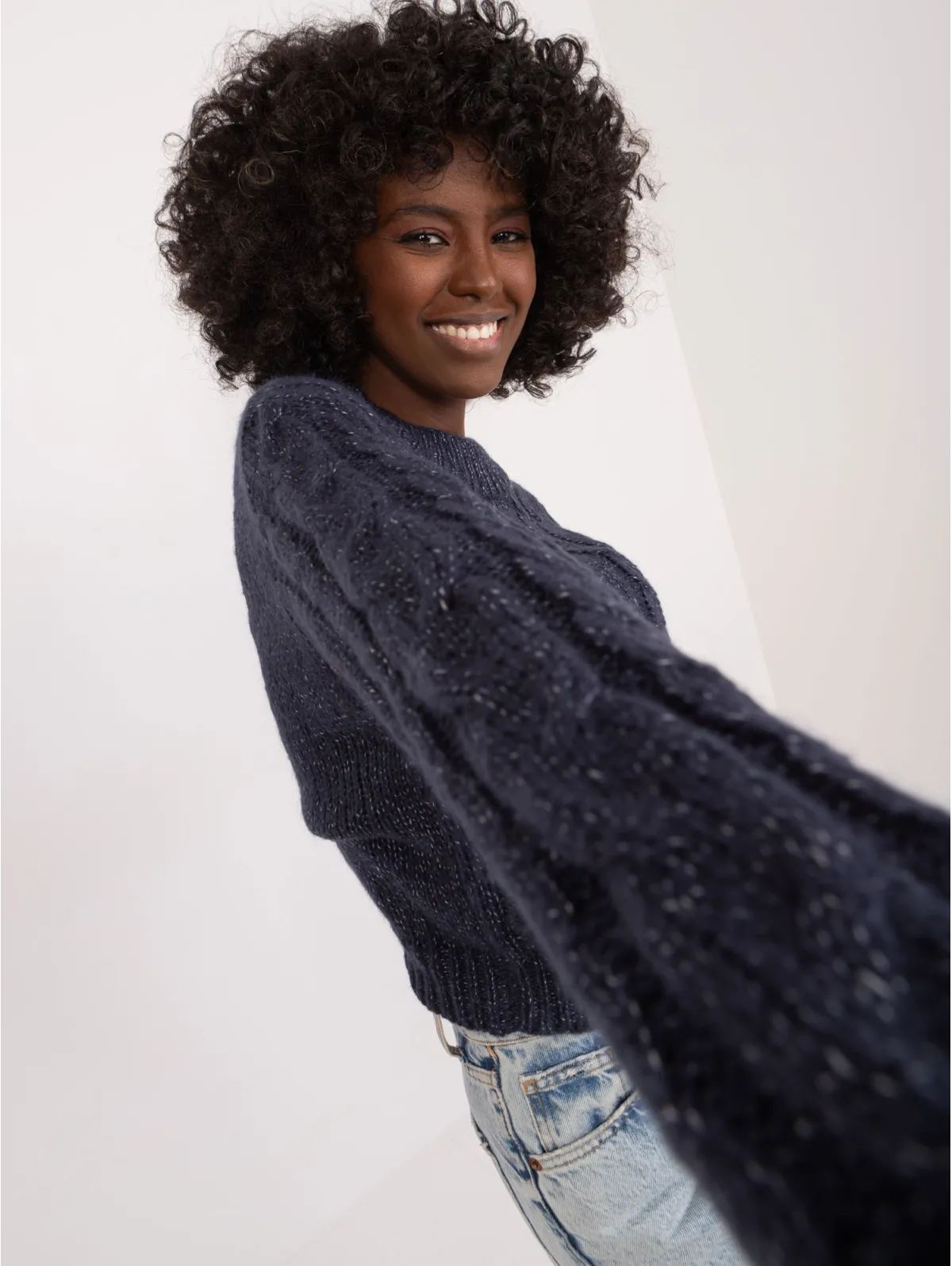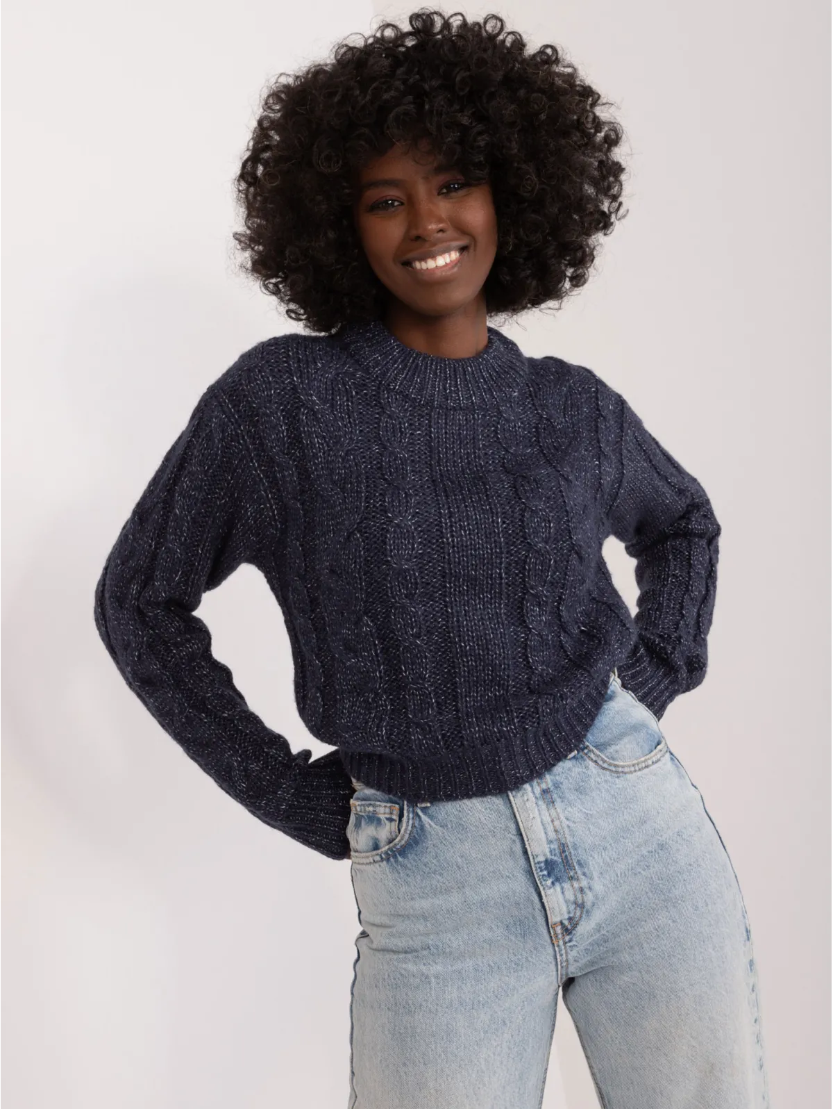 Trumpas megztinis su pynių raštu