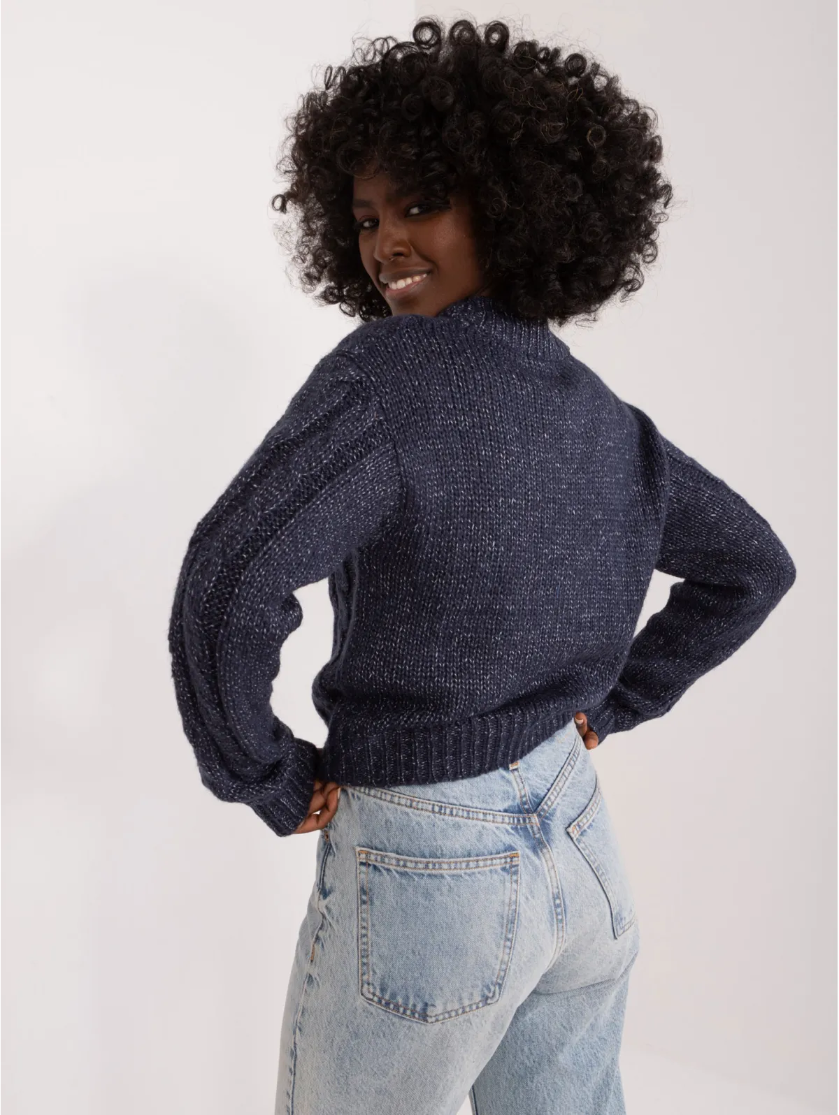 S dydžio megztinio matmenys, matuojamas plokščias: pažasties plotis - 41 cm, rankovių ilgis - 63 cm, bendras ilgis - 42 cm.