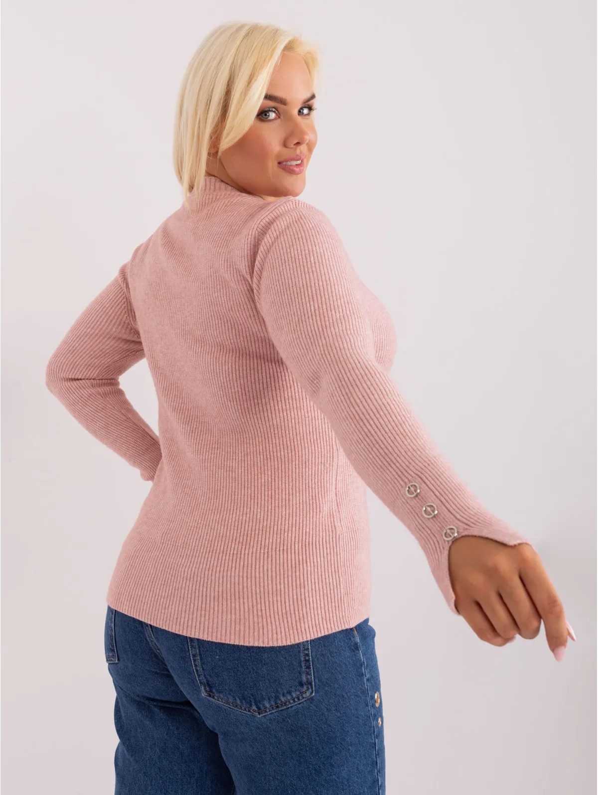 Šviesiai rožinis moteriškas plius dydžio viskozės megztinis .