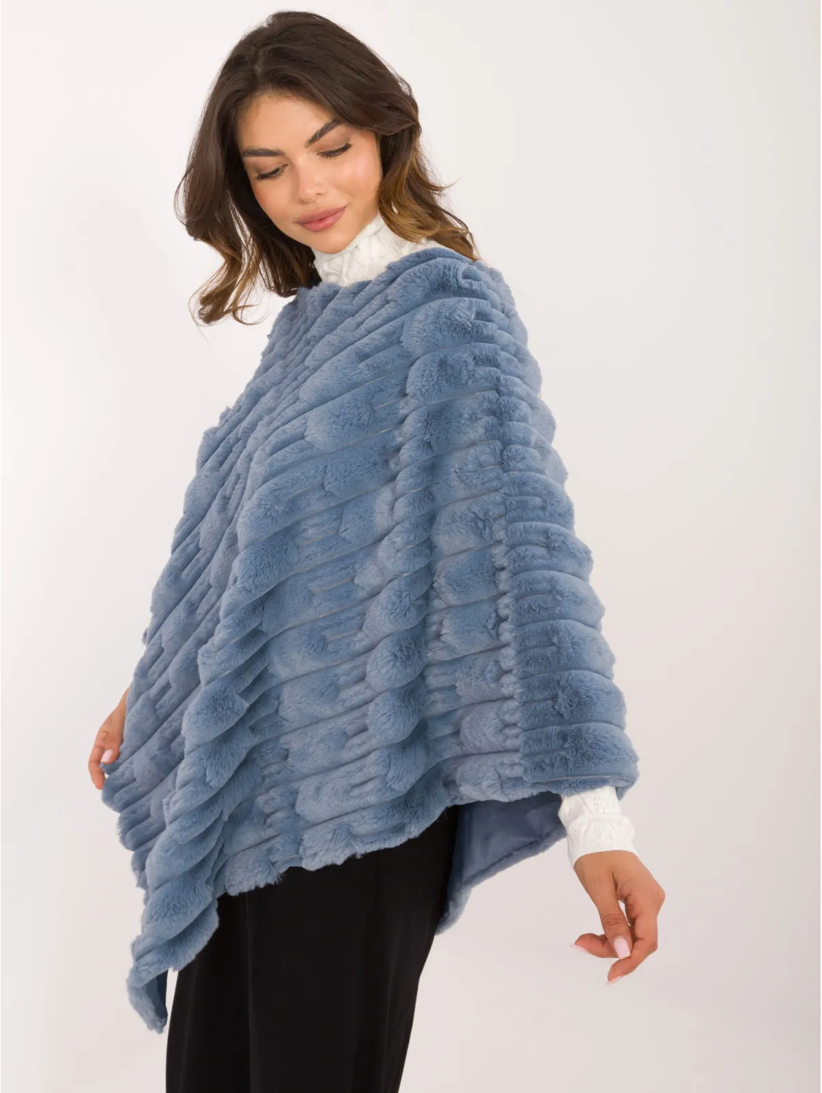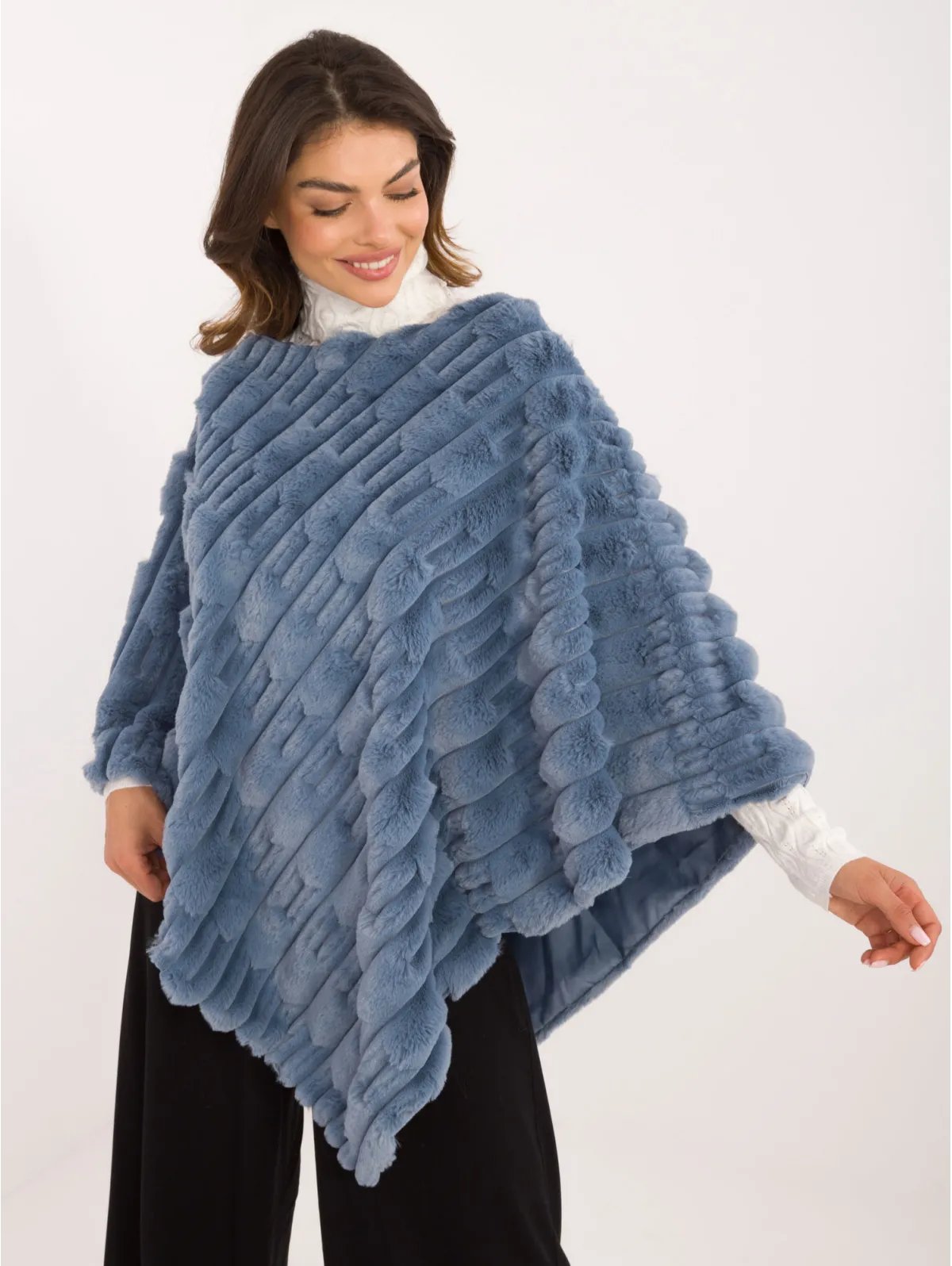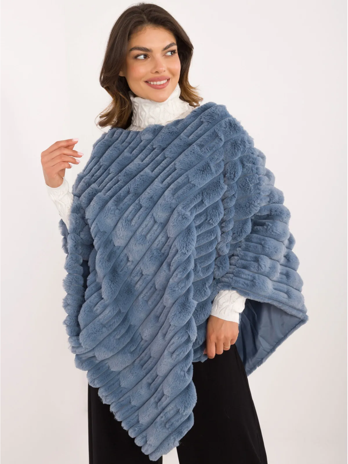 Vieno dydžio pončo matmenys išmatuoti plokščiai: bendras ilgis - 88 cm.