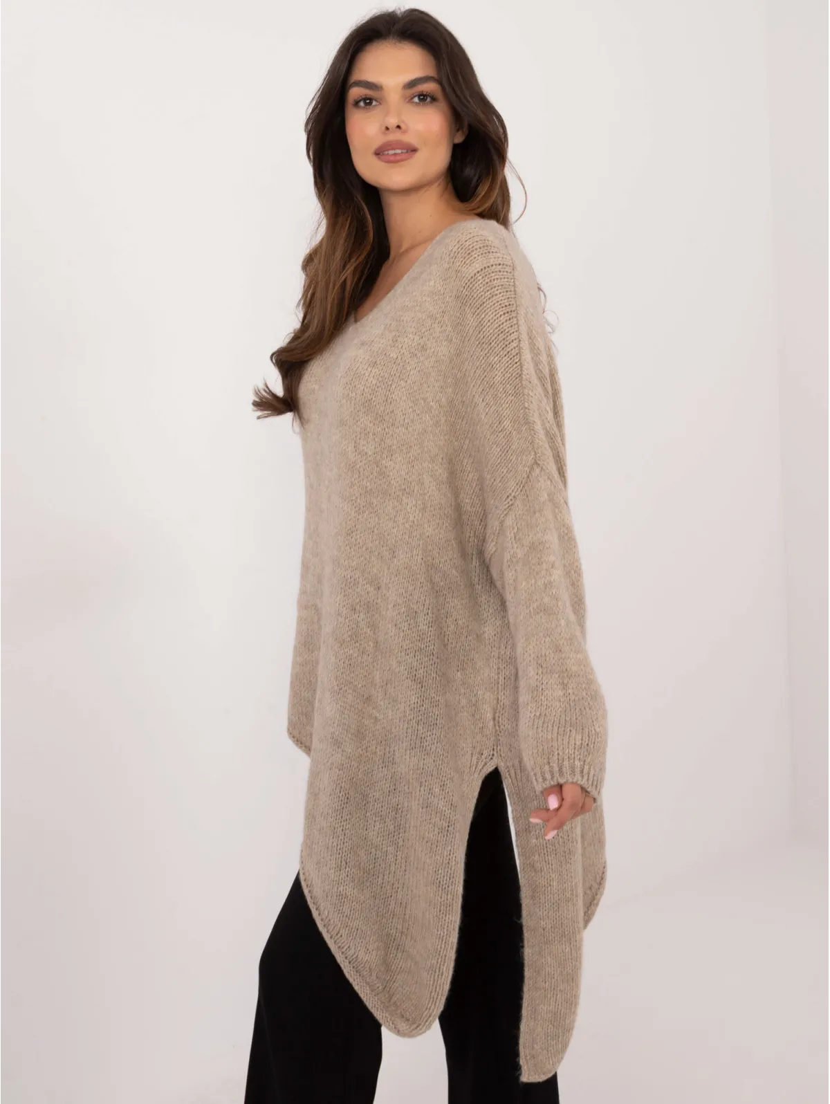 - Modelis dėvi vieno dydžio dydį. Modelio išmatavimai: ūgis 173 cm, krūtinė 85 cm, juosmuo 62 cm, klubai 95 cm