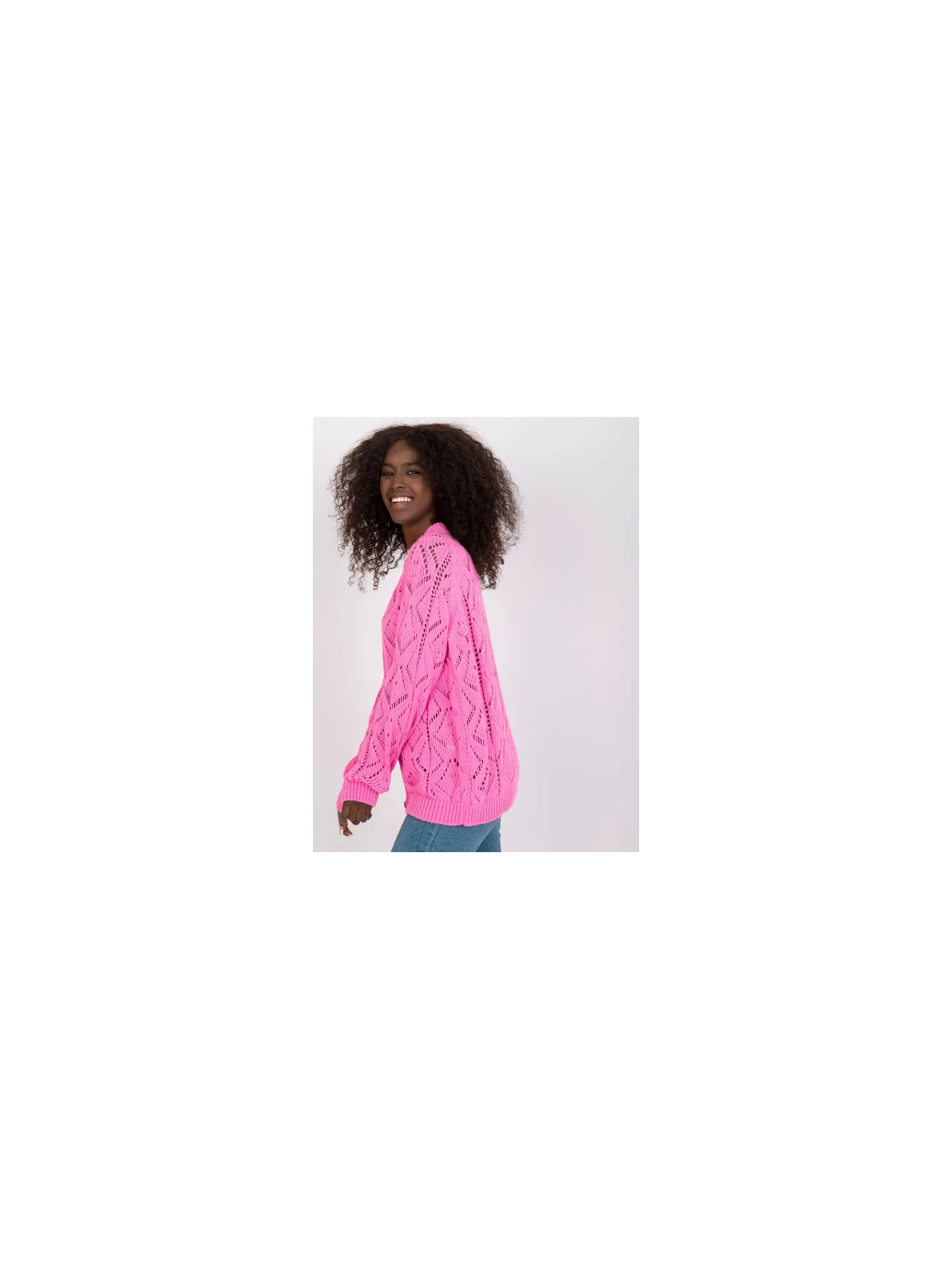 Modelis dėvi dydį one size . Modelio išmatavimai: Ūgis 168 cm, krūtinė 82 cm, juosmuo 62 cm, klubai 93 cm. Megztinio one size dydžio išmatavimai: krūtinė - 59 cm, bendras ilgis - 62 cm, rankovių ilgis - 59 cm.