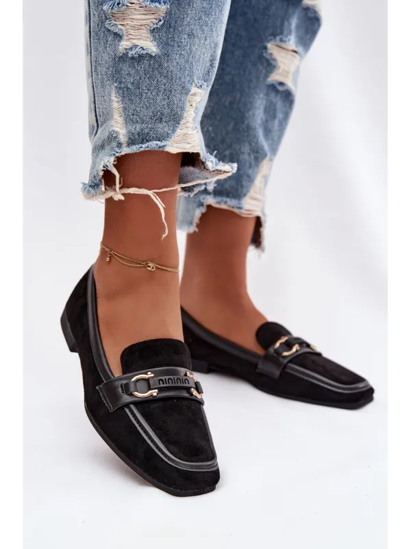 Loafers Women's Moccasins With Decorative Element Black Evelora