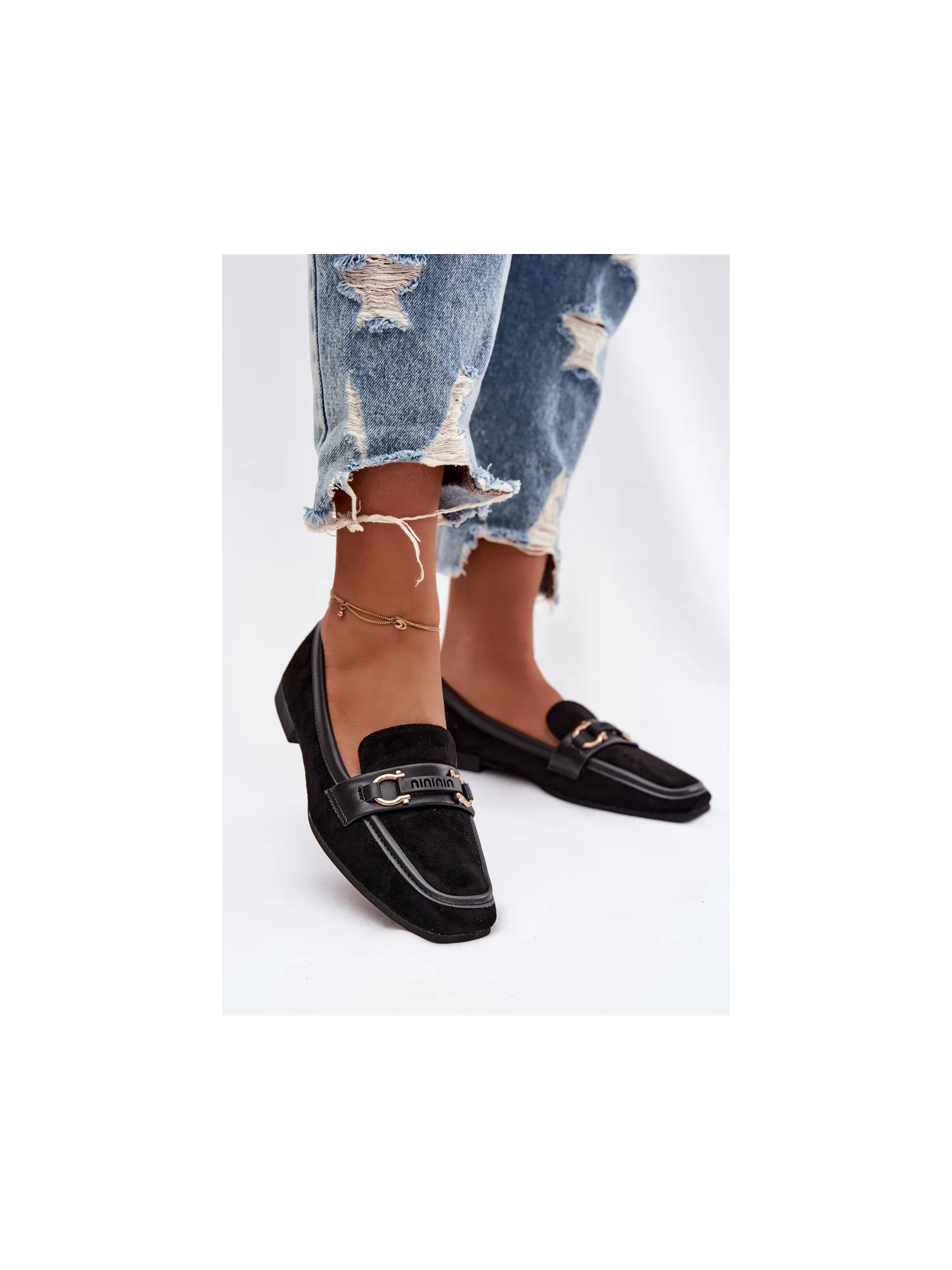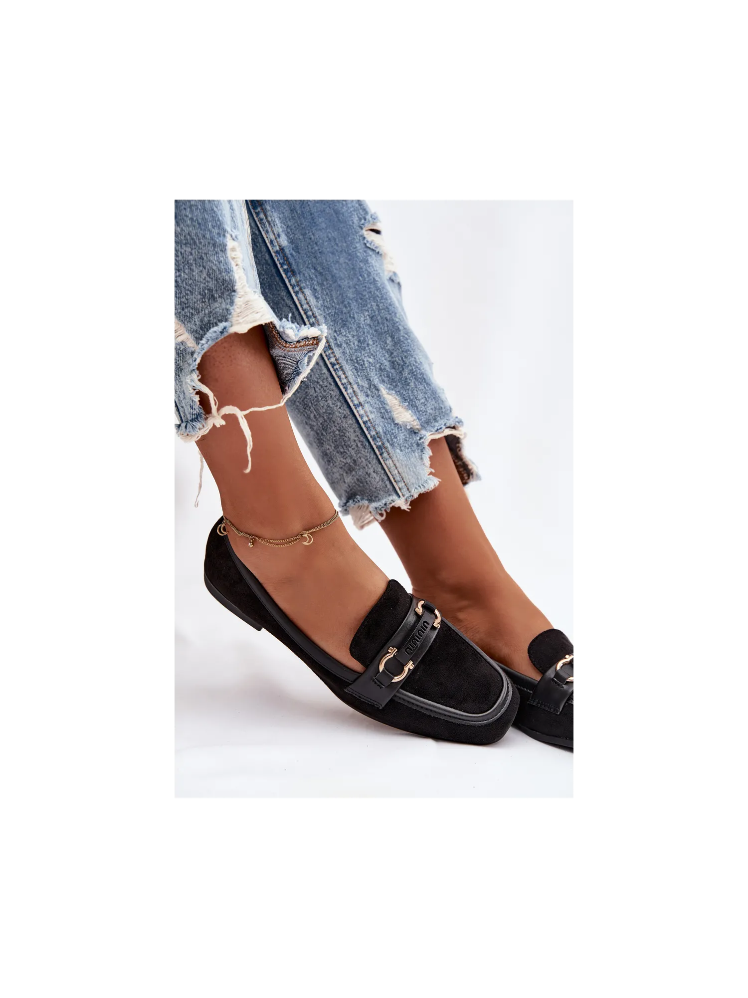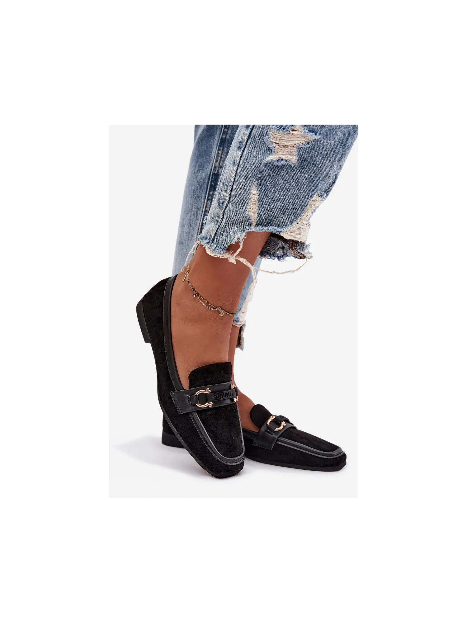 Women's loafers are an elegant and versatile option, perfect for everyday wear. Set on a flat heel, they provide comfort and stability while walking. The model features a subtle decorative element at the front, adding a stylish touch. The rounded toes highlight the classic shoe design, and the soft eco-leather insole guarantees comfort even during extended wear. These timeless shoes are a great fit for both casual and more formal styles. Please refer to the size chart when choosing your size. When choosing a size, please refer to the size chart.
