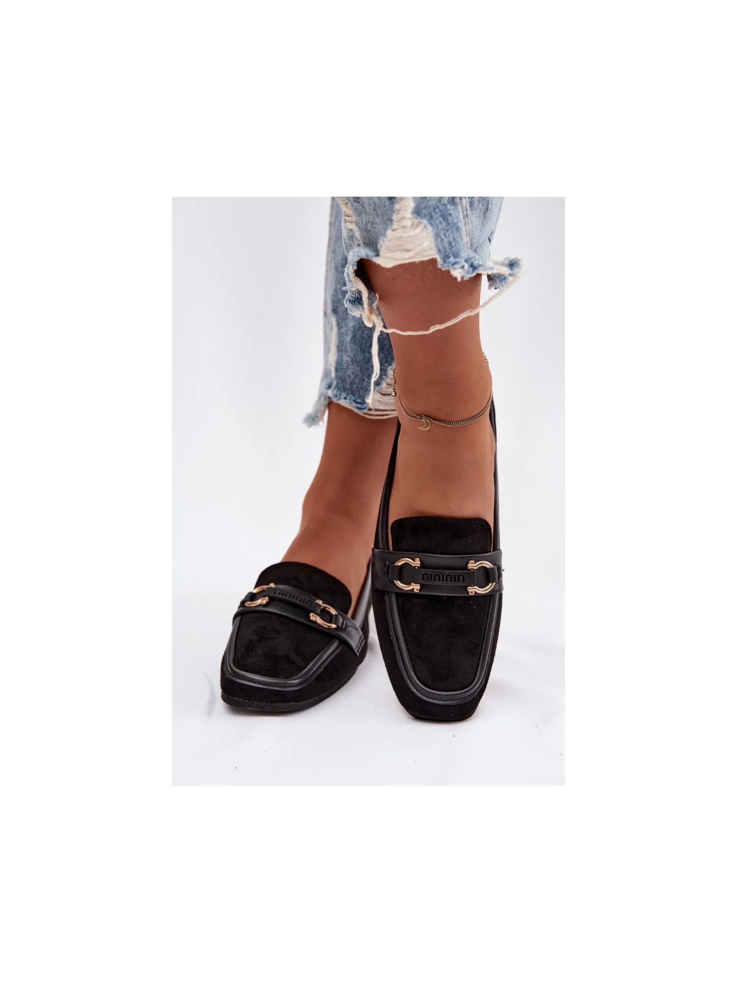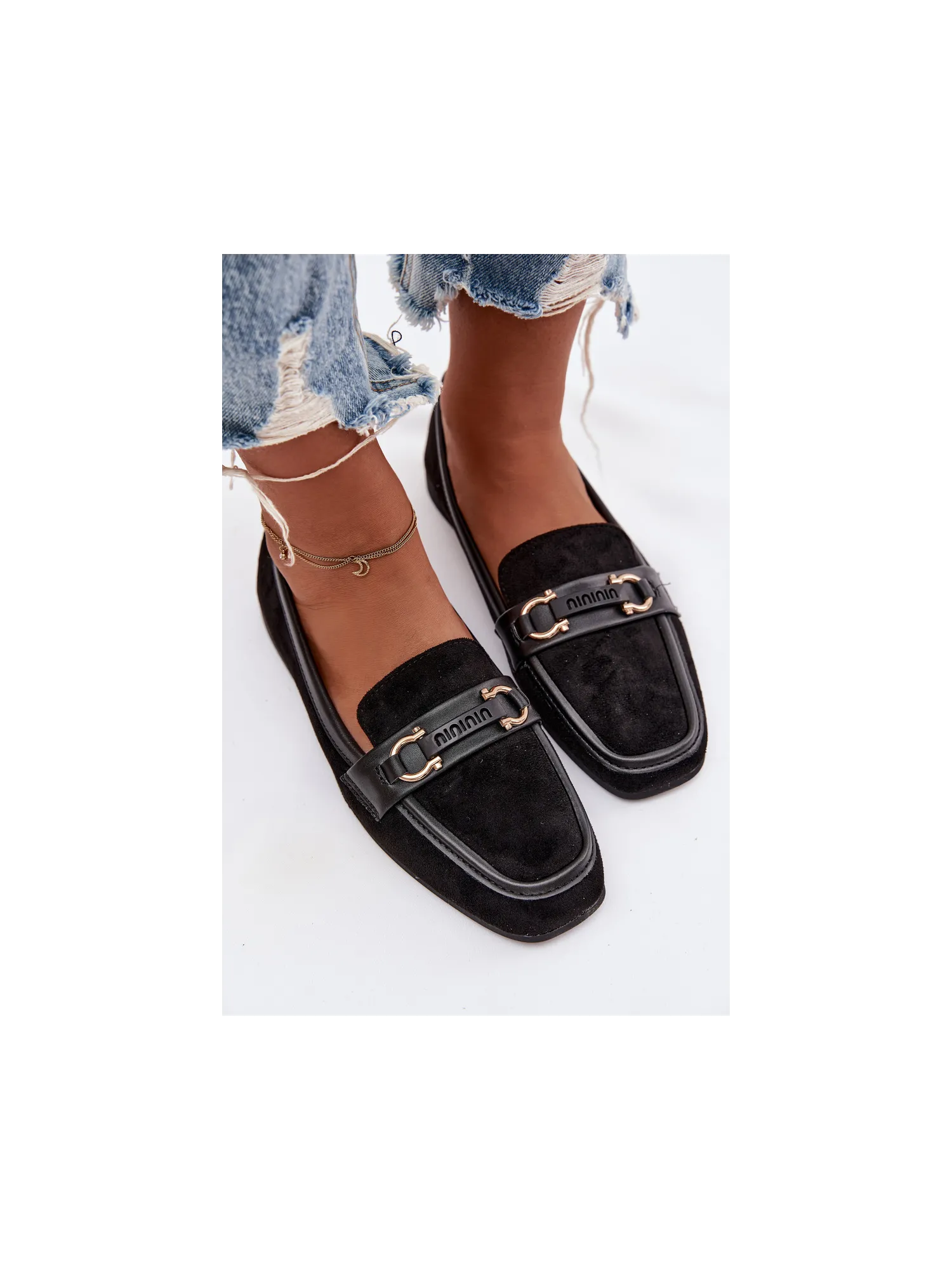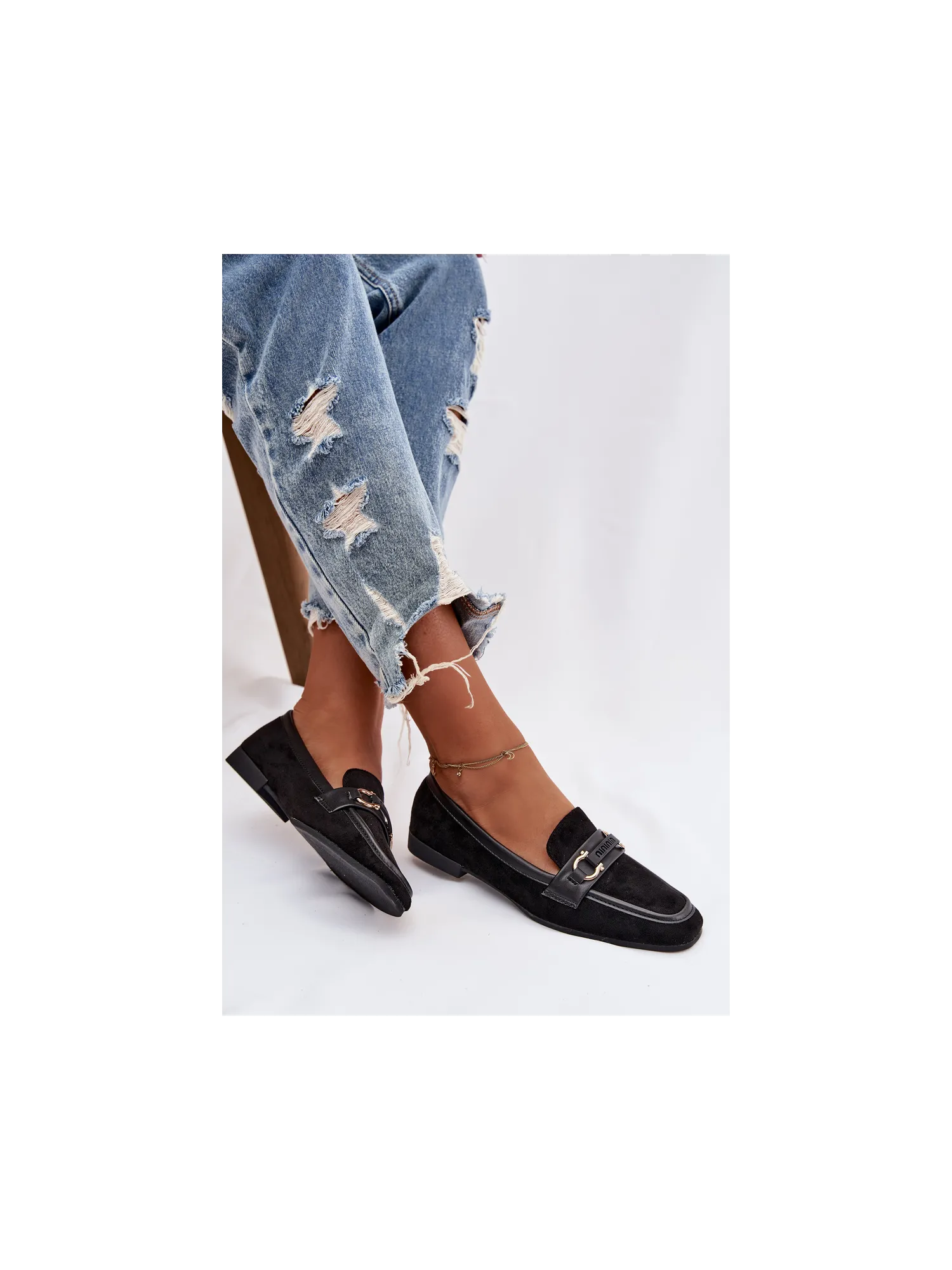 Women's loafers are an elegant and versatile option, perfect for everyday wear. Set on a flat heel, they provide comfort and stability while walking. The model features a subtle decorative element at the front, adding a stylish touch. The rounded toes highlight the classic shoe design, and the soft eco-leather insole guarantees comfort even during extended wear. These timeless shoes are a great fit for both casual and more formal styles. Please refer to the size chart when choosing your size. When choosing a size, please refer to the size chart.