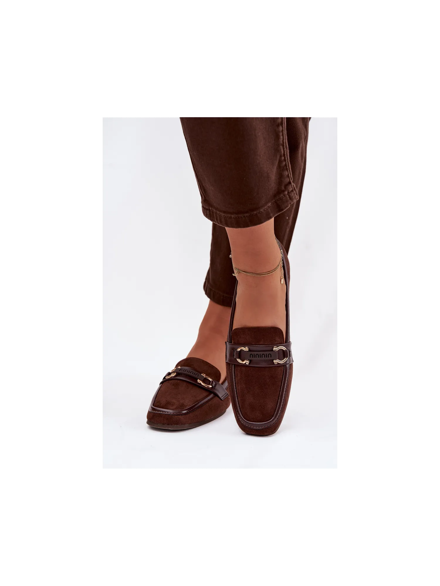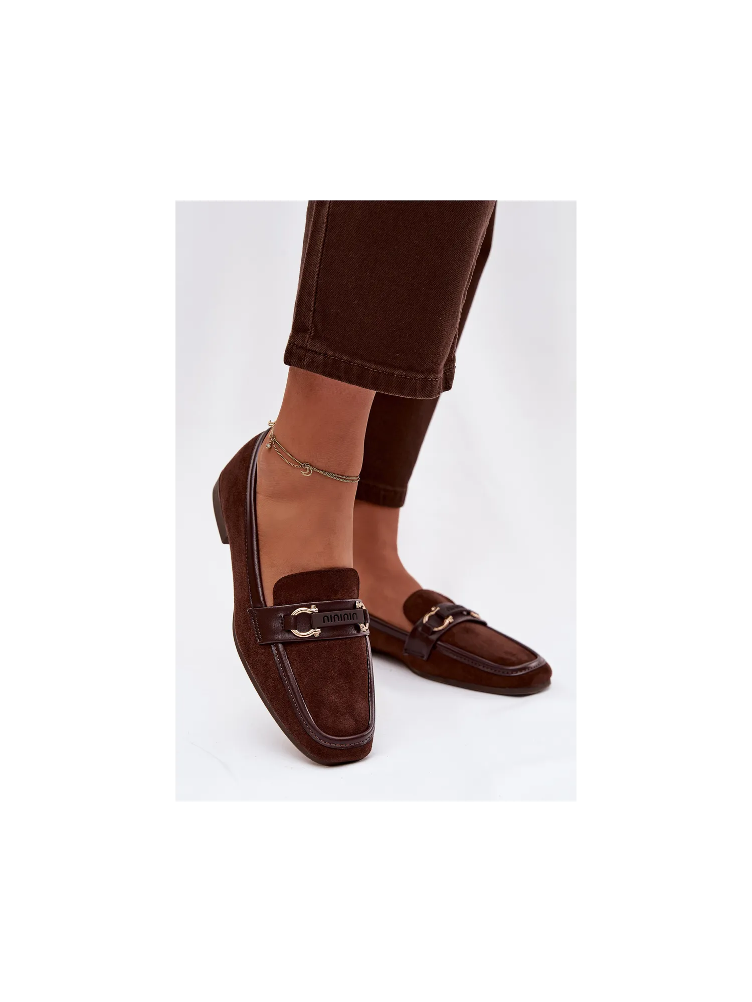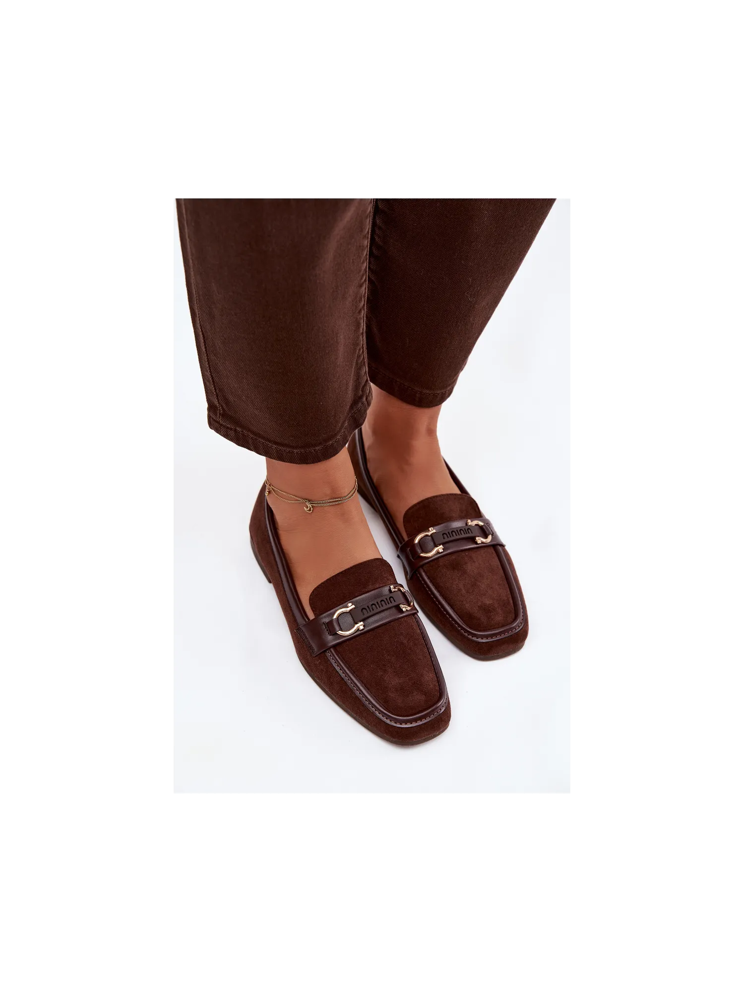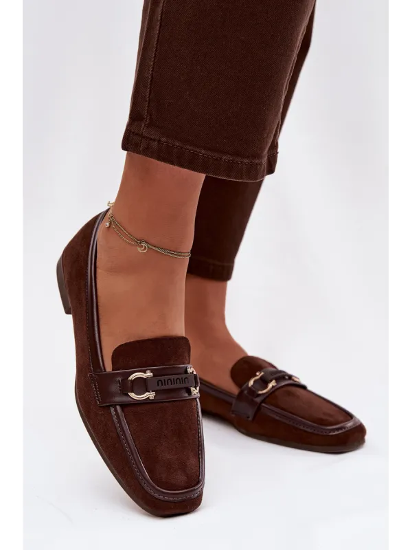 Moteriški mokasinai su dekoratyviniais elementais, šokolado spalvos, Evelora