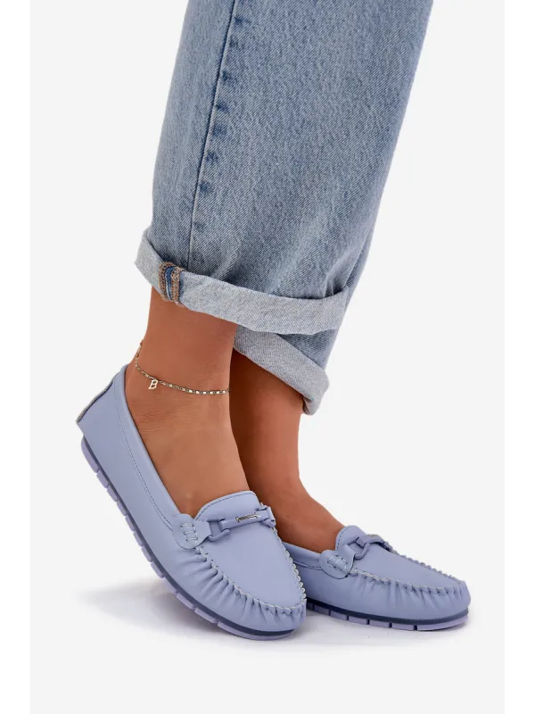 Plokšti odiniai mokasinai su puošmena S.Barski LR51-547 Smėlio spalvos
