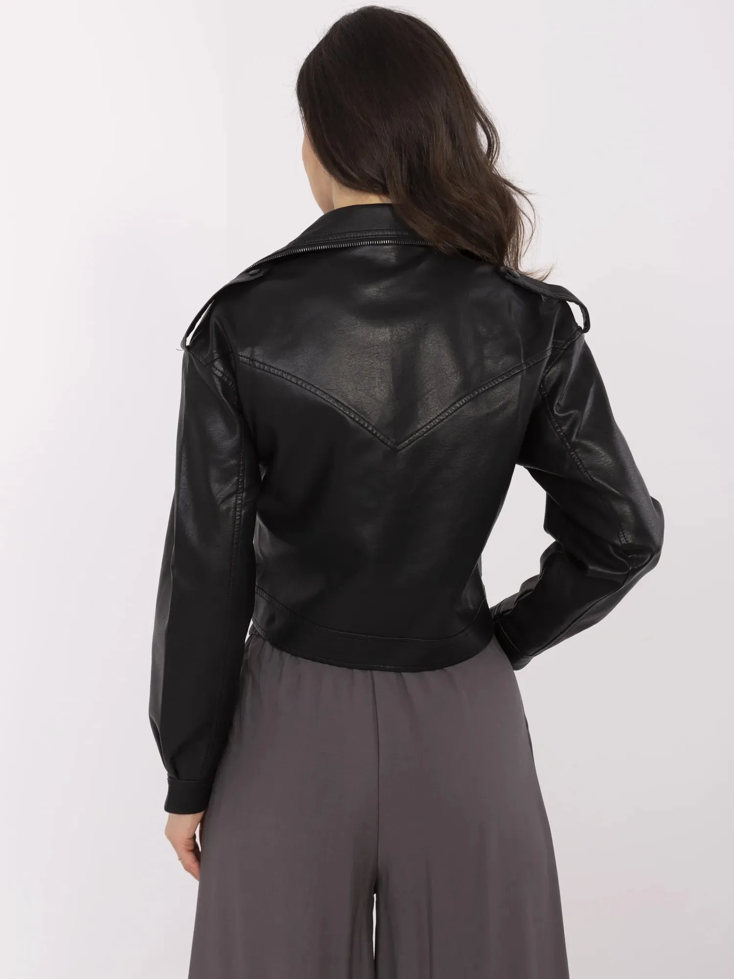 S dydžio striukės matmenys išmatuoti plokščiai: plotis po pažastimis - 47 cm, rankovių ilgis - 53 cm (nuo siūlės), klubų plotis - 41 cm, bendras ilgis - 49 cm.