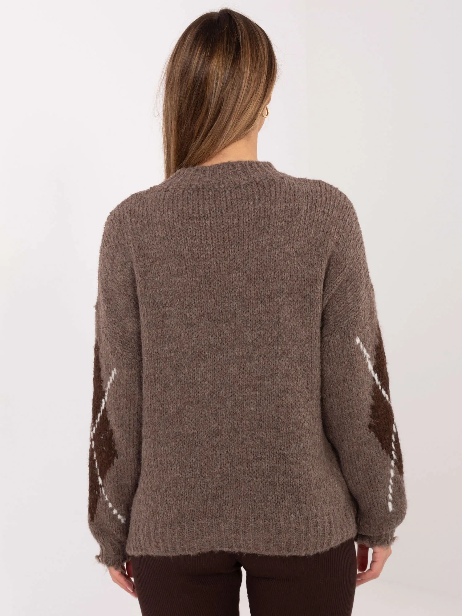 Megztinio vieno dydžio matmenys, išmatuoti plokščiai: plotis po pažastimis - 60 cm, plotis ties klubais - 60 cm, rankovių ilgis - 50 cm (nuo siūlės), bendras ilgis - 61 cm.