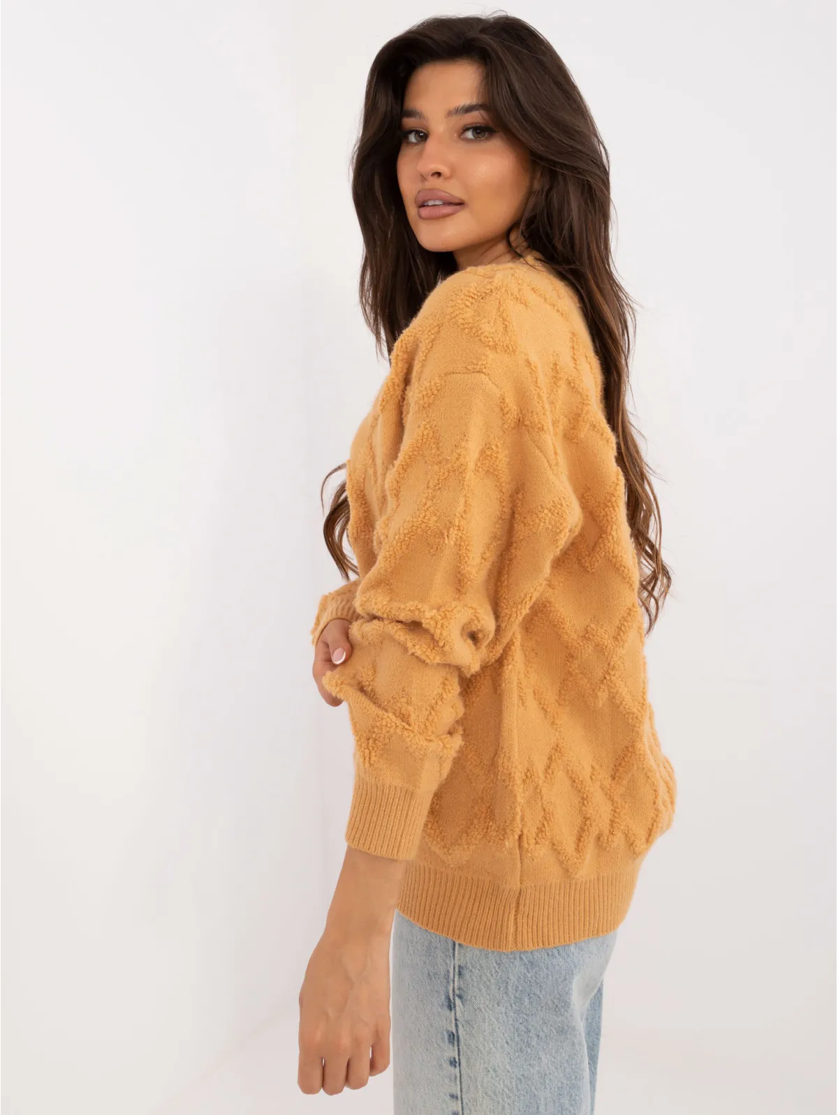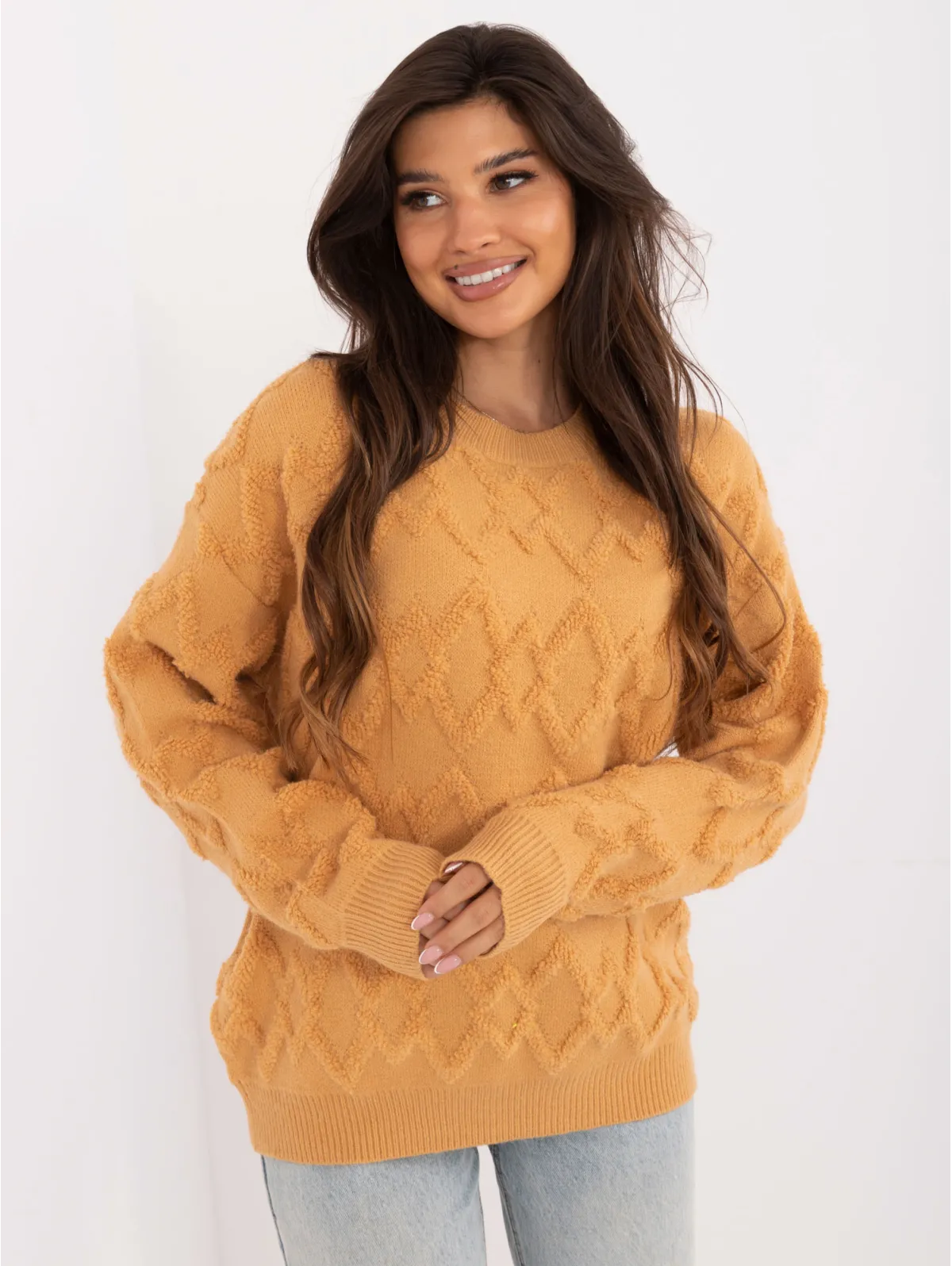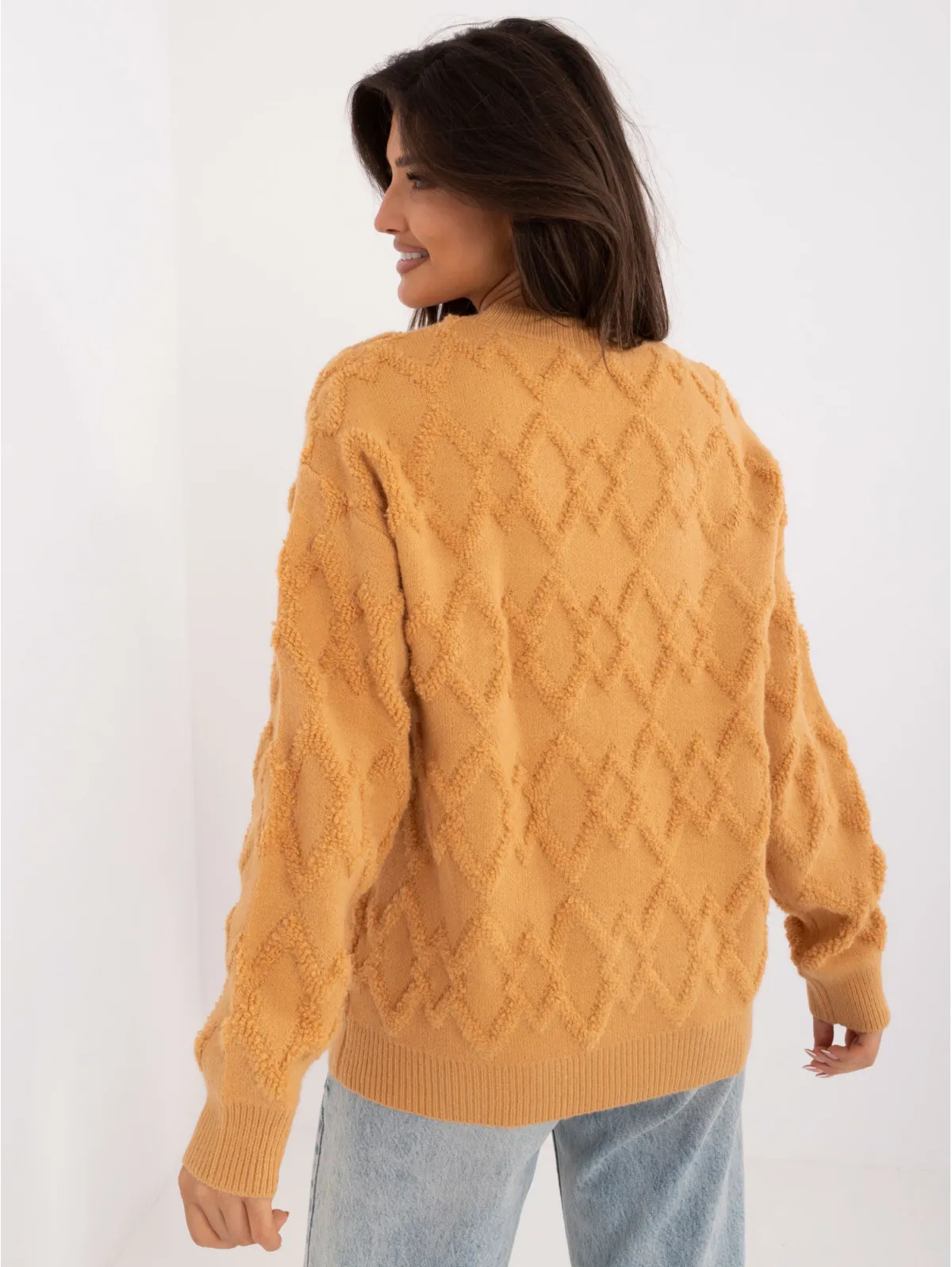 Švelnus tekstūrinis megztinis su rombais