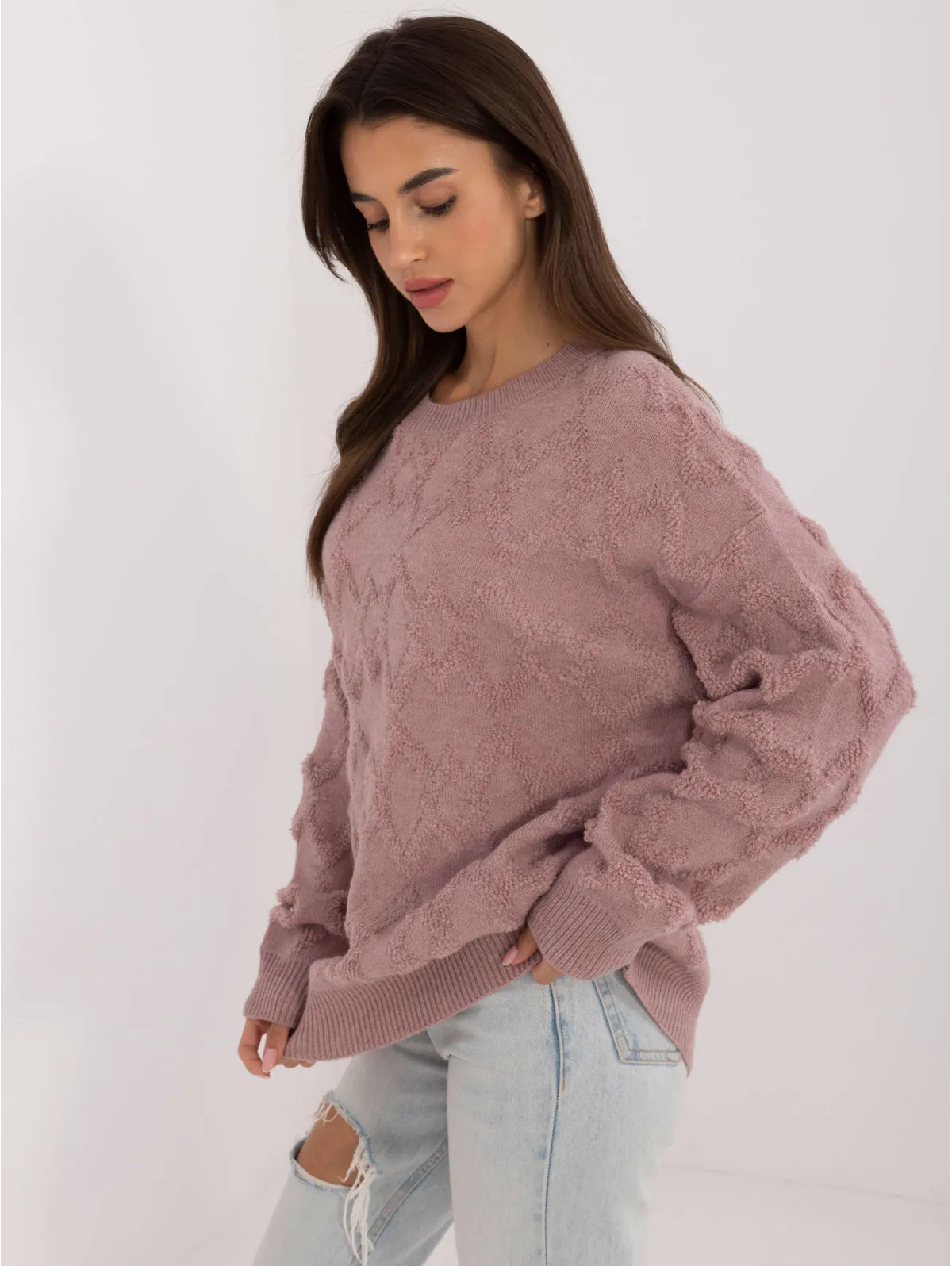 Švelnus tekstūrinis megztinis su rombais