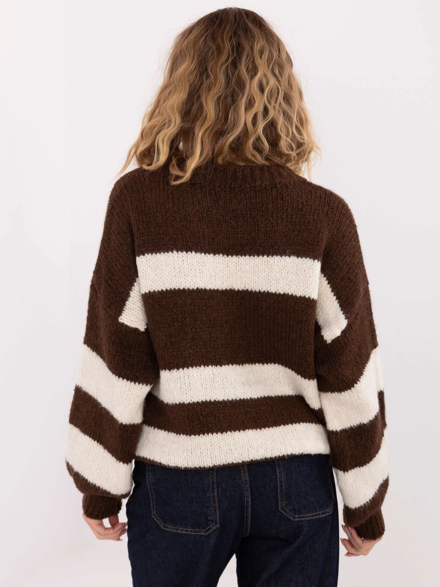 Megztinio vieno dydžio matmenys, išmatuoti plokščiai: plotis po pažastimis - 61 cm, plotis ties klubais - 49 cm, rankovių ilgis - 49 cm (nuo siūlės), bendras ilgis - 58 cm.