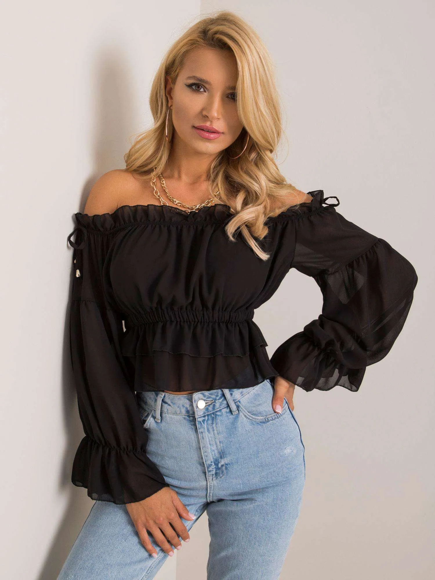 OCH BELLA Czarna bluzka hiszpanka.