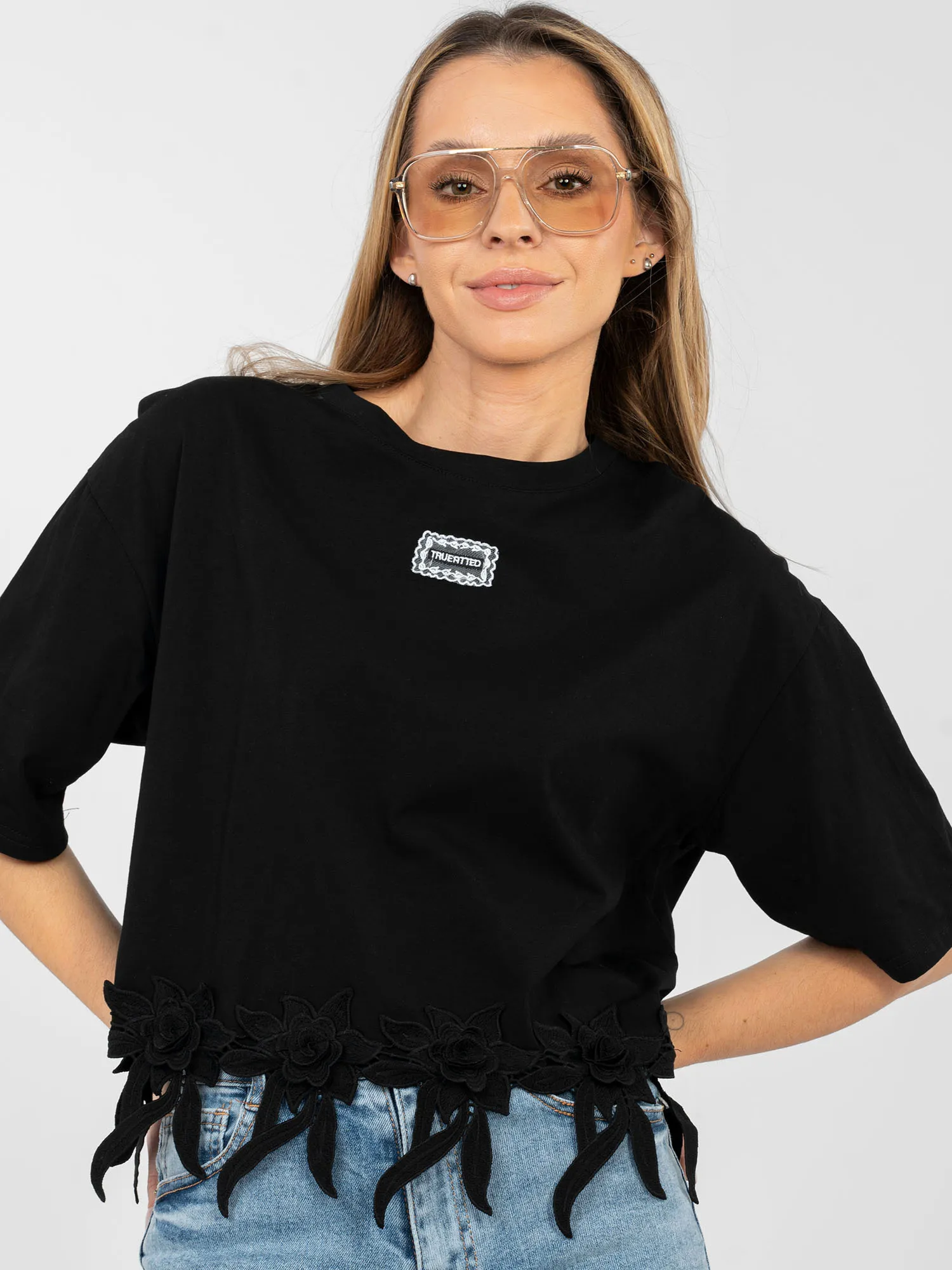 - Modelka ma na sobie rozmiar one size. Wymiary modelki: wzrost 169 cm, biust 88 cm, talia 68 cm, biodra 89 cm