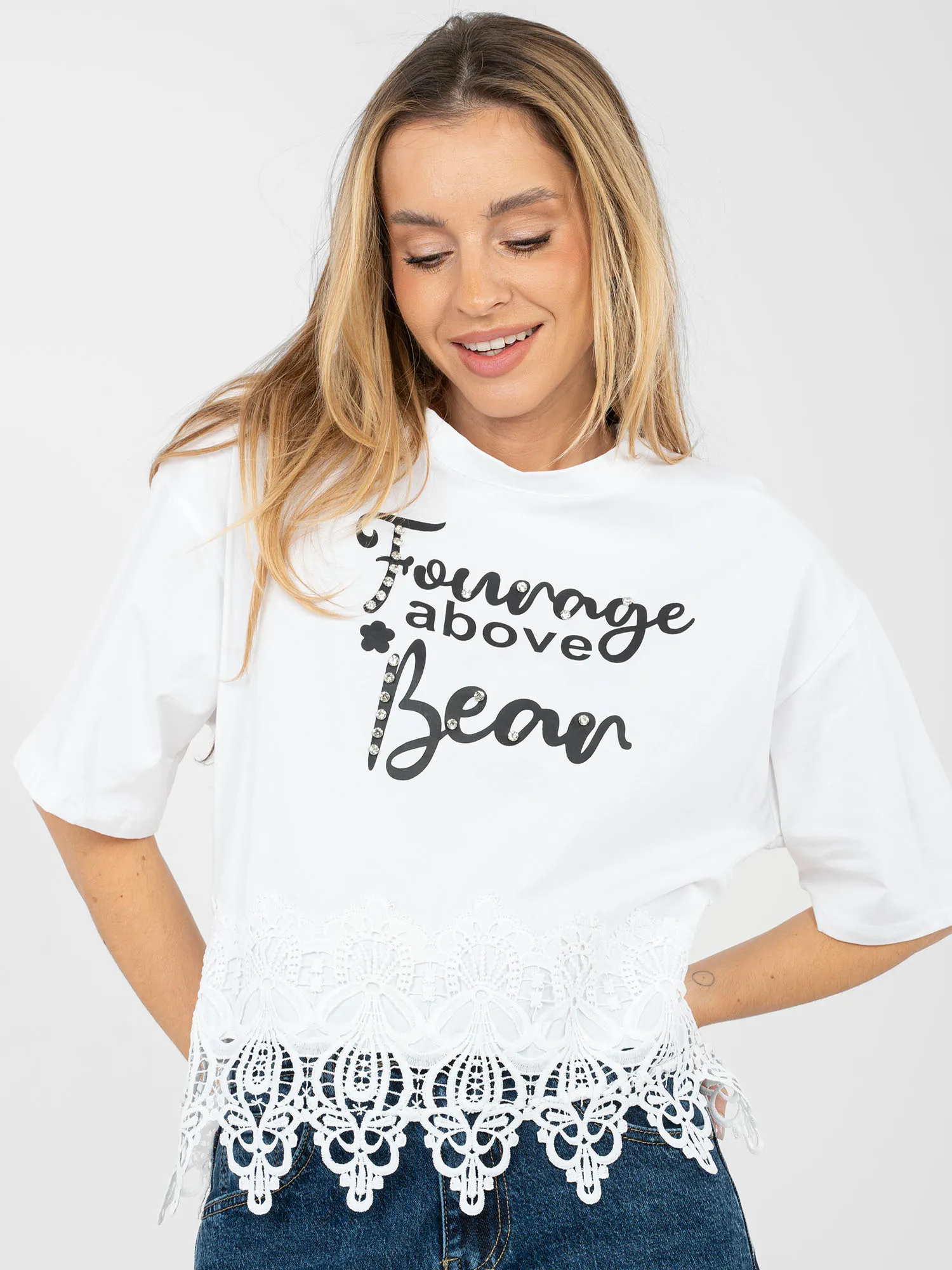 - Modelka ma na sobie rozmiar one size. Wymiary modelki: wzrost 169 cm, biust 88 cm, talia 68 cm, biodra 89 cm