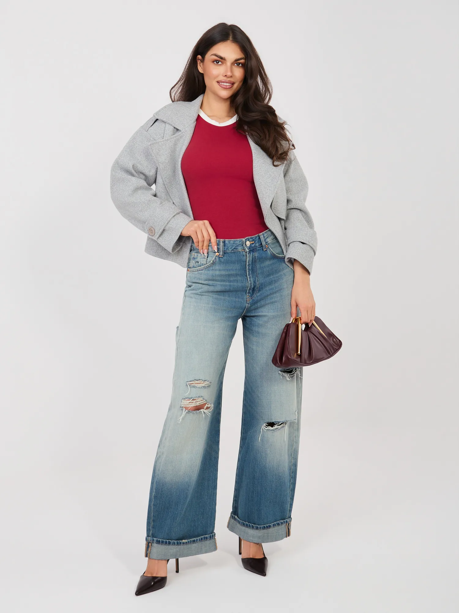 Modelka ma na sobie rozmiar S. Wymiary modelki: wzrost 173 cm, biust 85 cm, talia 62 cm, biodra 95 cm.