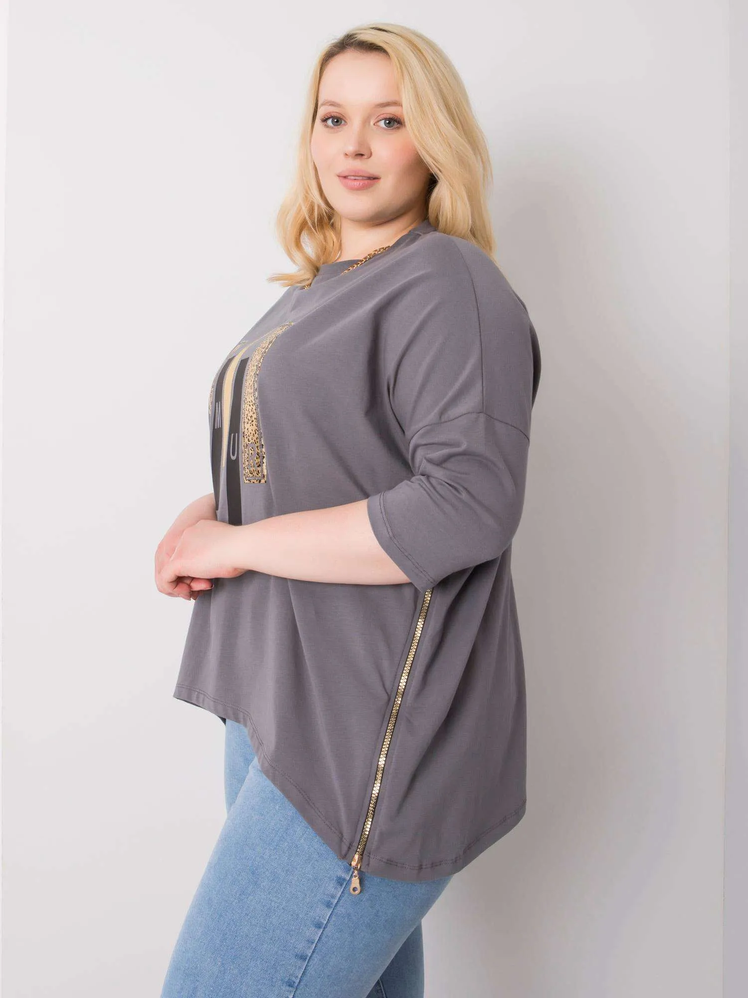 Wymiary bluzki w rozmiarze one size mierzone na płasko: szerokość pod pachami - 78 cm, długość całkowita - 74 cm, długość rękawa - 44 cm