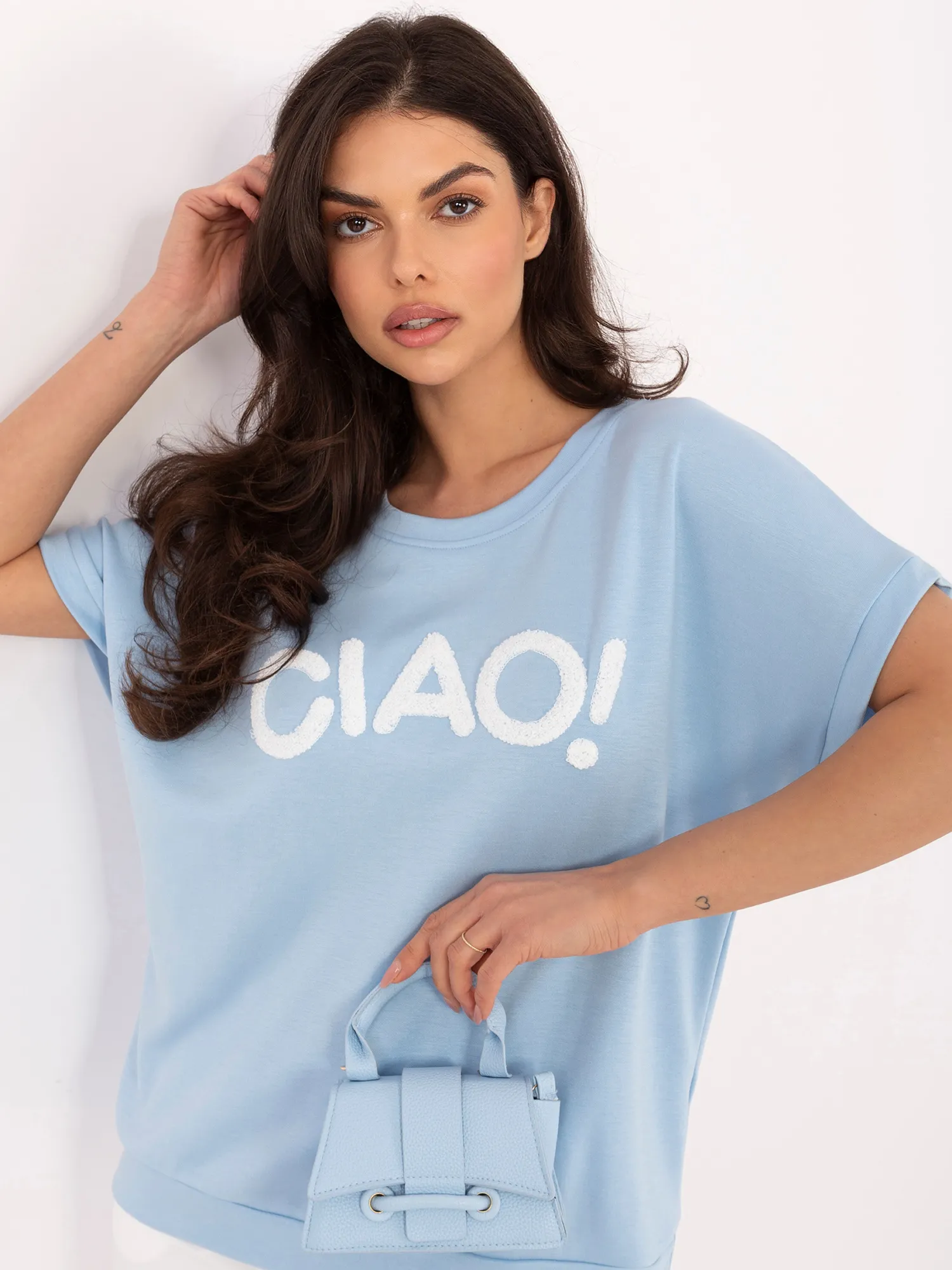 - Modelis dėvi vieno dydžio dydį. Modelio išmatavimai: ūgis 173 cm, krūtinė 85 cm, juosmuo 62 cm, klubai 95 cm