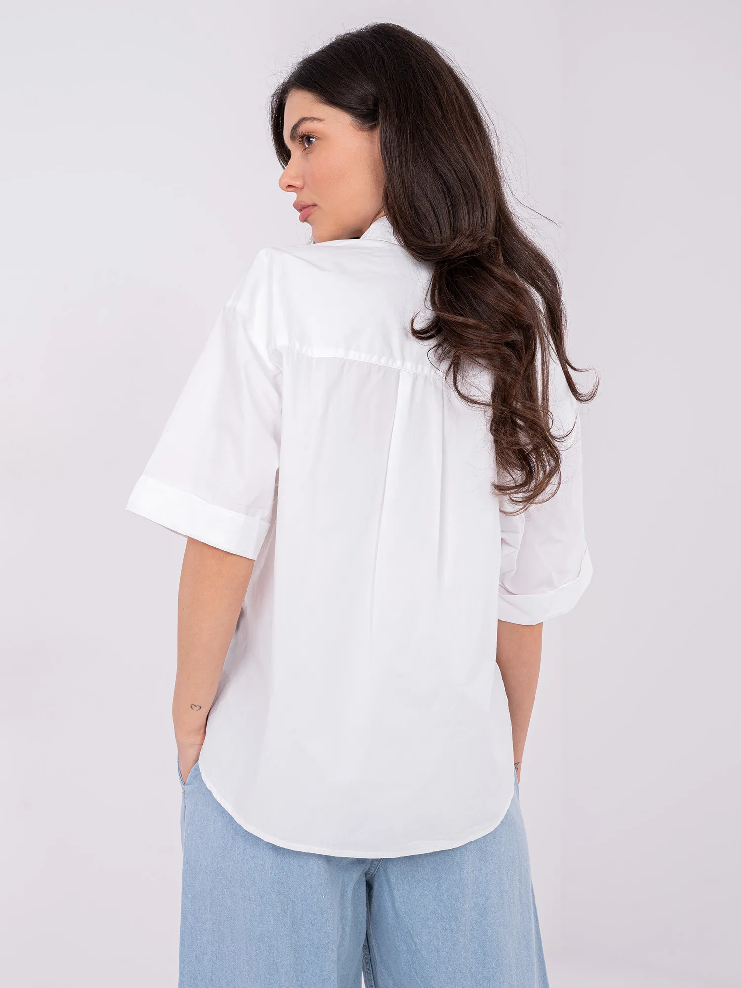 S dydžio marškinių išmatavimai, išmatuoti plokščiai: plotis po pažastimis - 59 cm, bendras ilgis - 57 cm (priekyje), bendras ilgis - 65 cm (nugaroje), klubų plotis - 61 cm, rankovių ilgis - 24 cm.