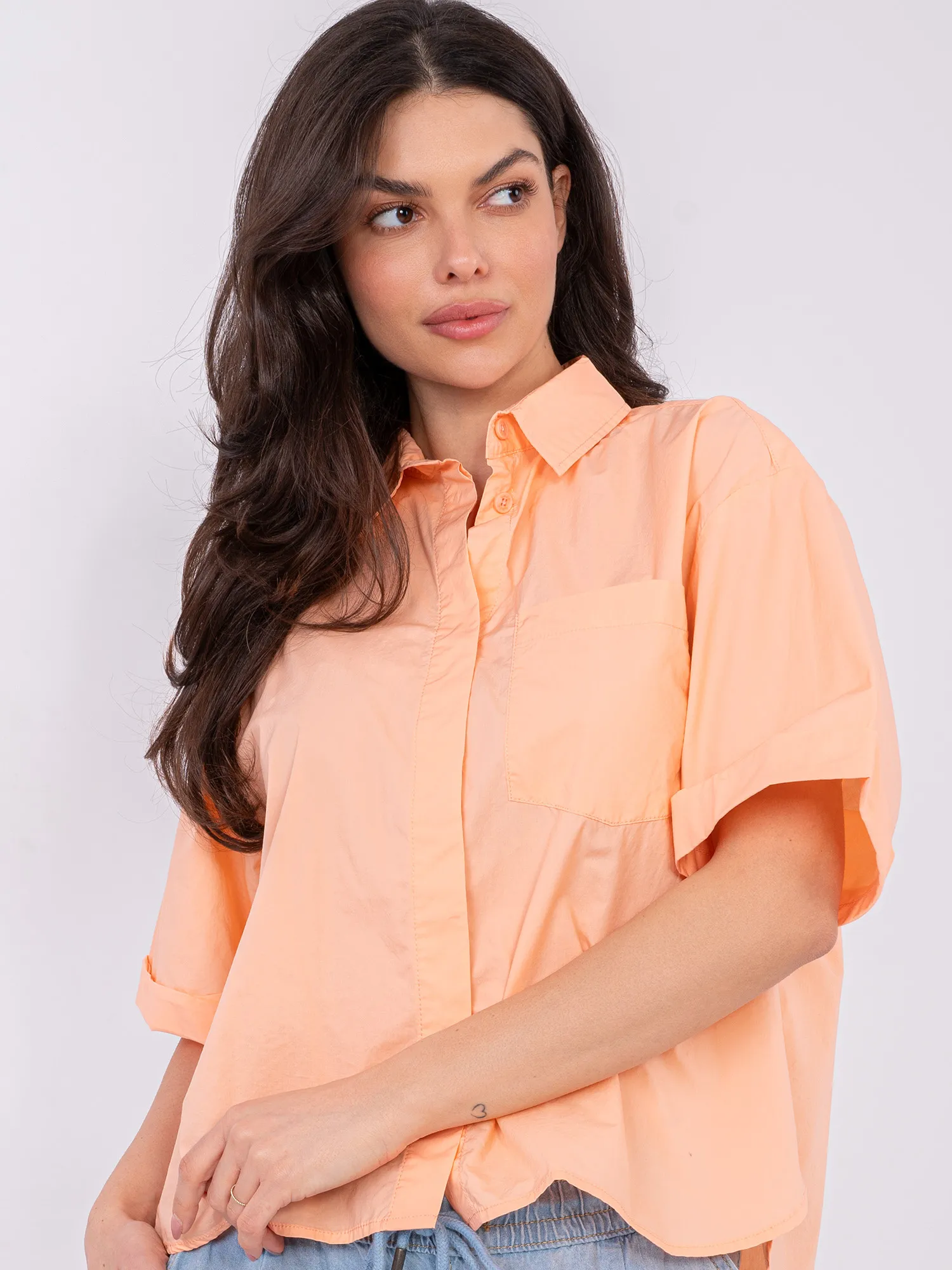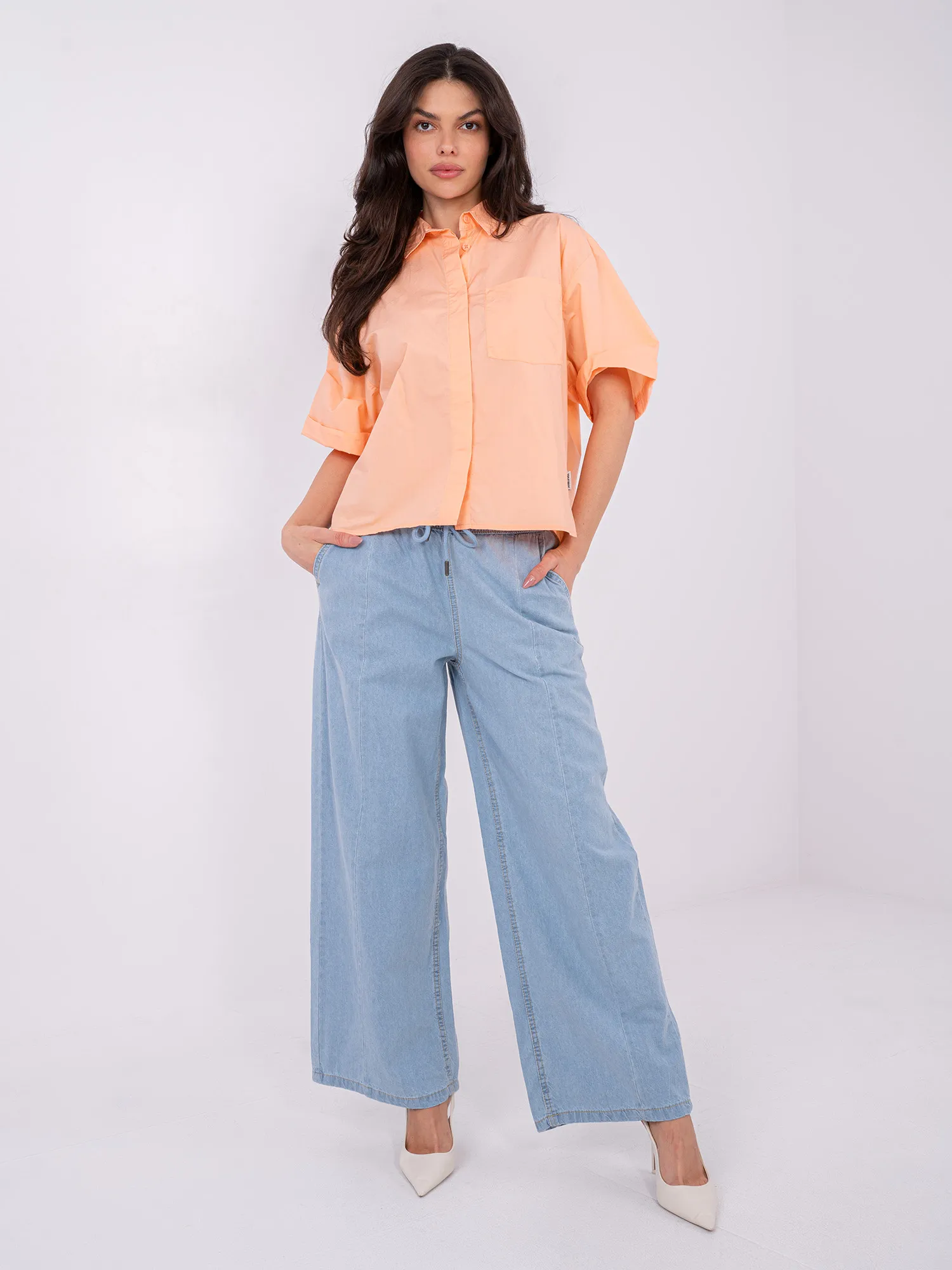 Modelis dėvi S dydį. Modelio išmatavimai: ūgis 173 cm, krūtinės apimtis 85 cm, juosmuo 62 cm, klubai 95 cm .