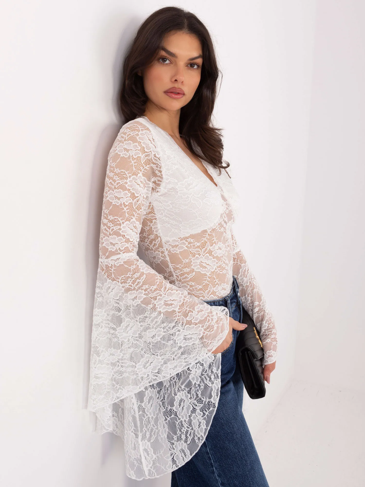 - Modelis dėvi vieno dydžio dydį. Modelio išmatavimai: ūgis 173 cm, krūtinė 85 cm, juosmuo 62 cm, klubai 95 cm