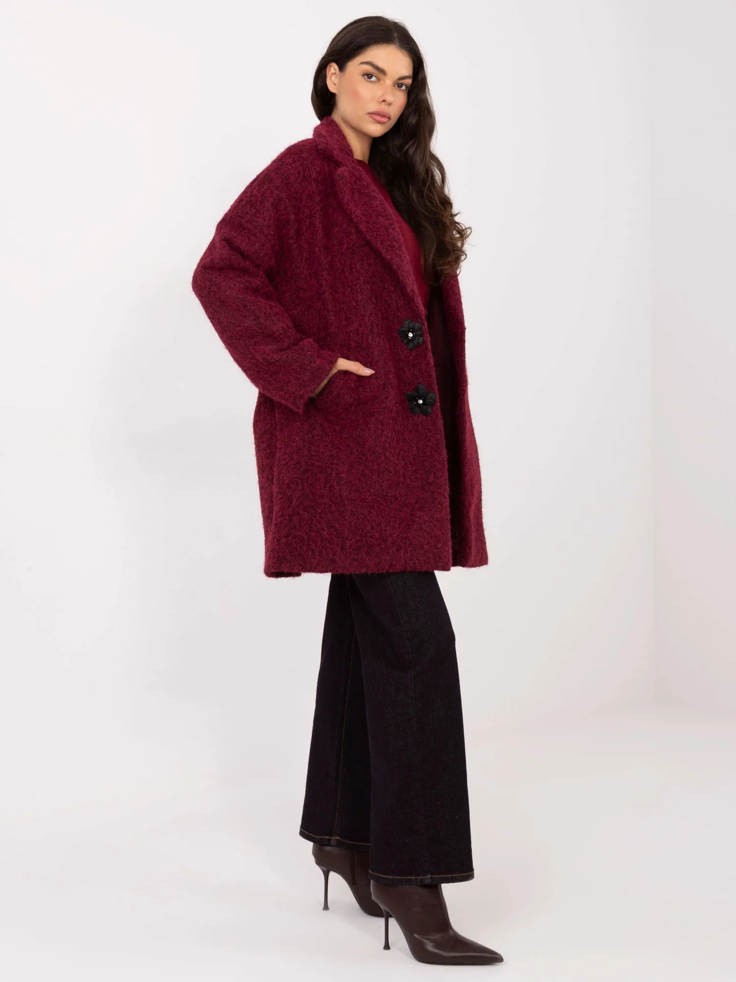 Wymiary płaszcza w rozmiarze one size mierzone na płasko: szerokość pod pachami - 63 cm, długość rękawa - 47 cm (od szwu), szerokość w talii - 62 cm, szerokość w biodrach - 64 cm, długość całkowita - 86 cm.