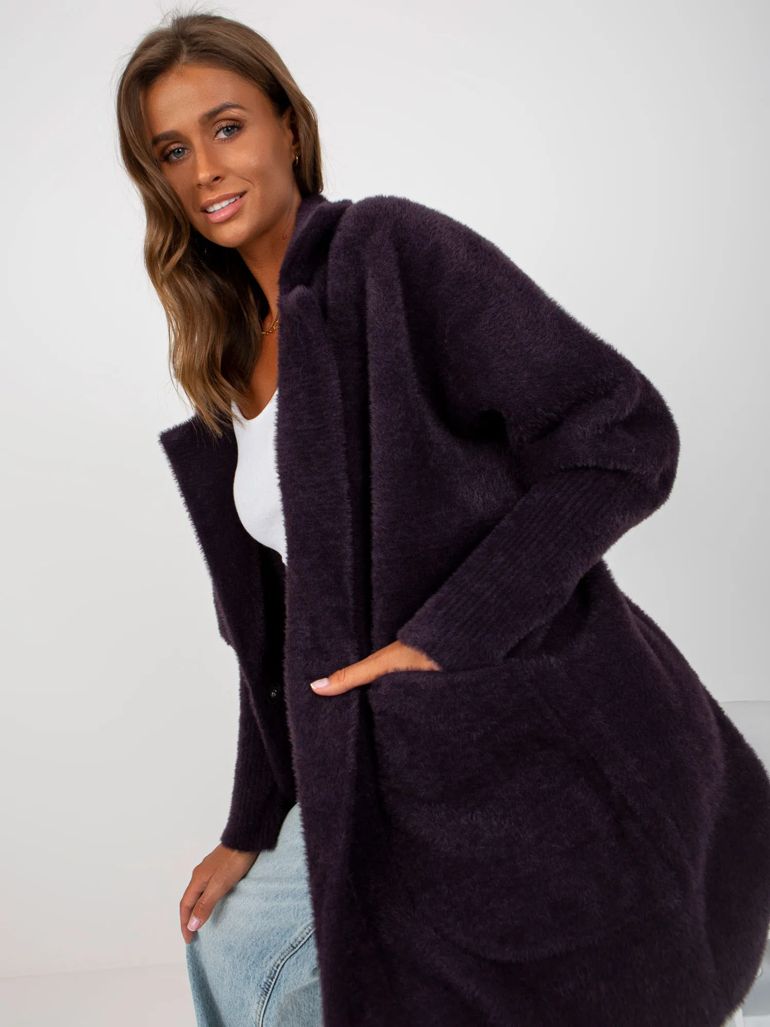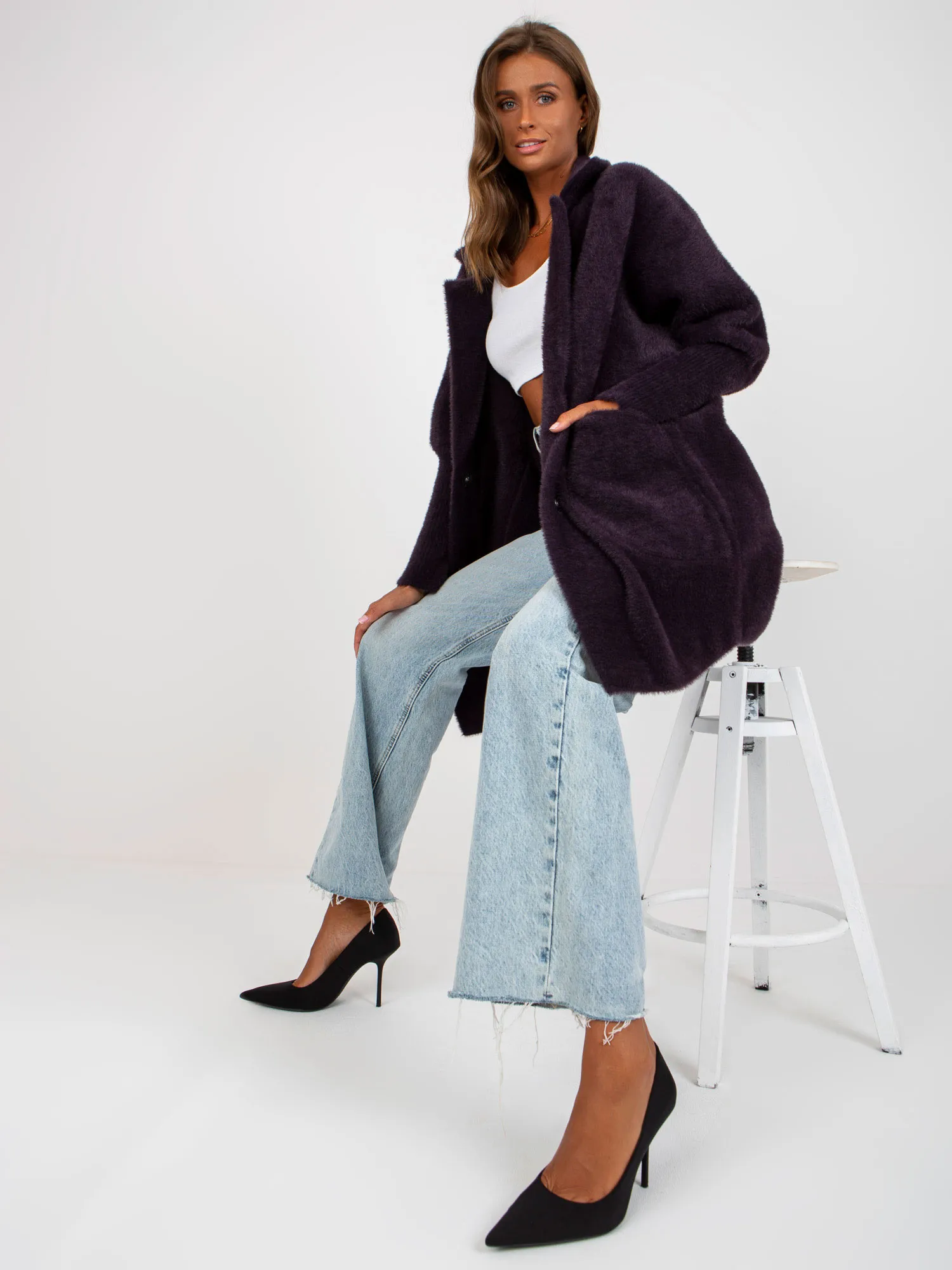 Tamsiai violetinės spalvos alpakų vilnos paltas .