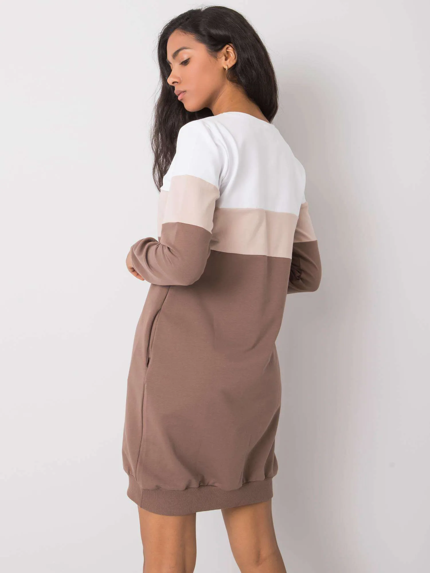 RUE PARIS Biało-brązowa sukienka dresowa .
