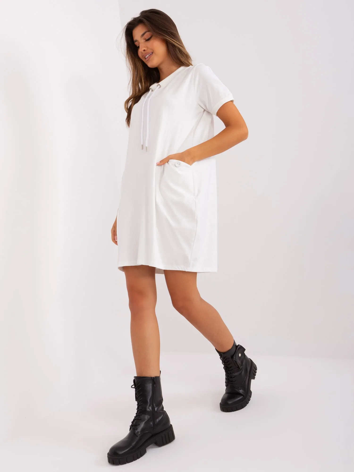Modelis dėvi S/M dydį. Modelio išmatavimai: ūgis 173 cm, krūtinė 89 cm, juosmuo 65 cm, klubai 91 cm.