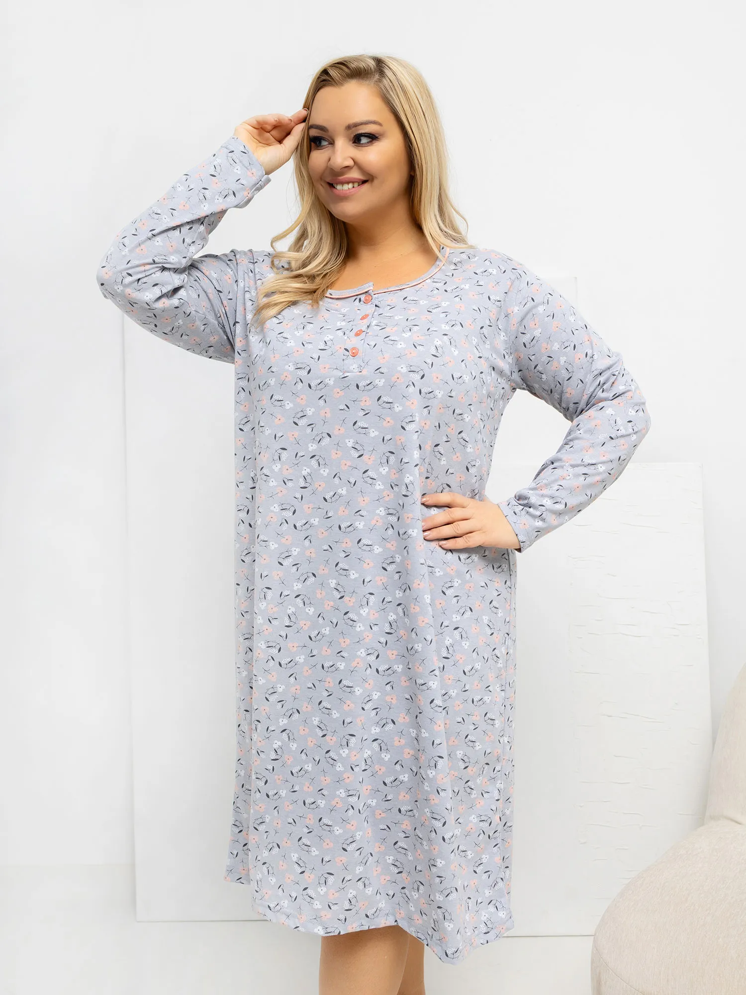 Modelka ma na sobie rozmiar XL. Wymiary modelki: wzrost 167 cm, biust 118 cm, talia 90 cm, biodra 118 cm .