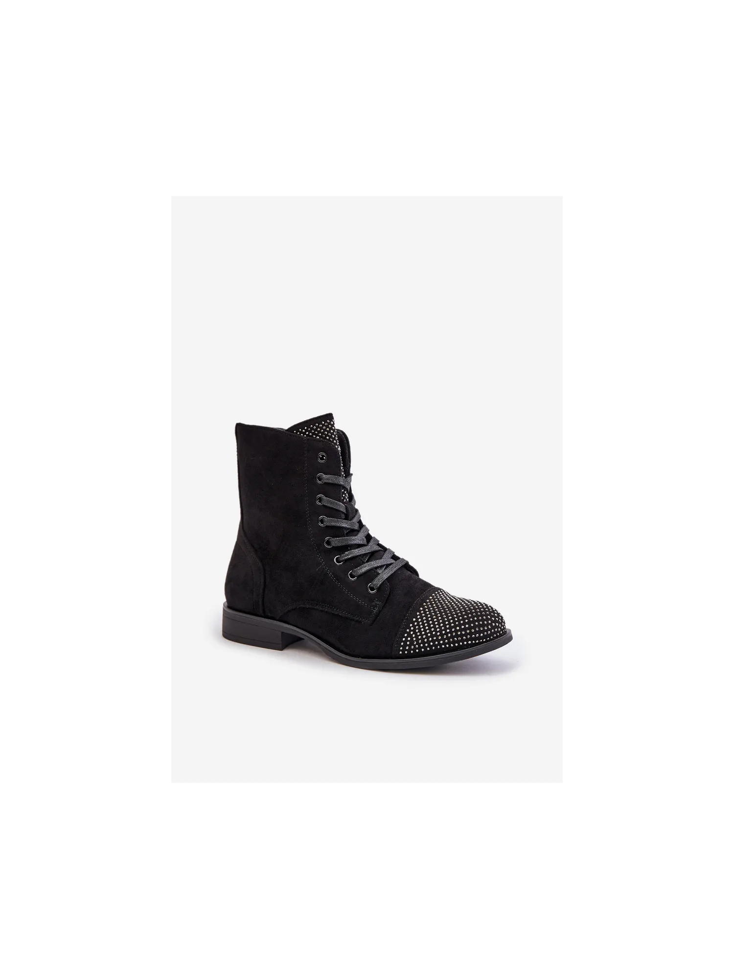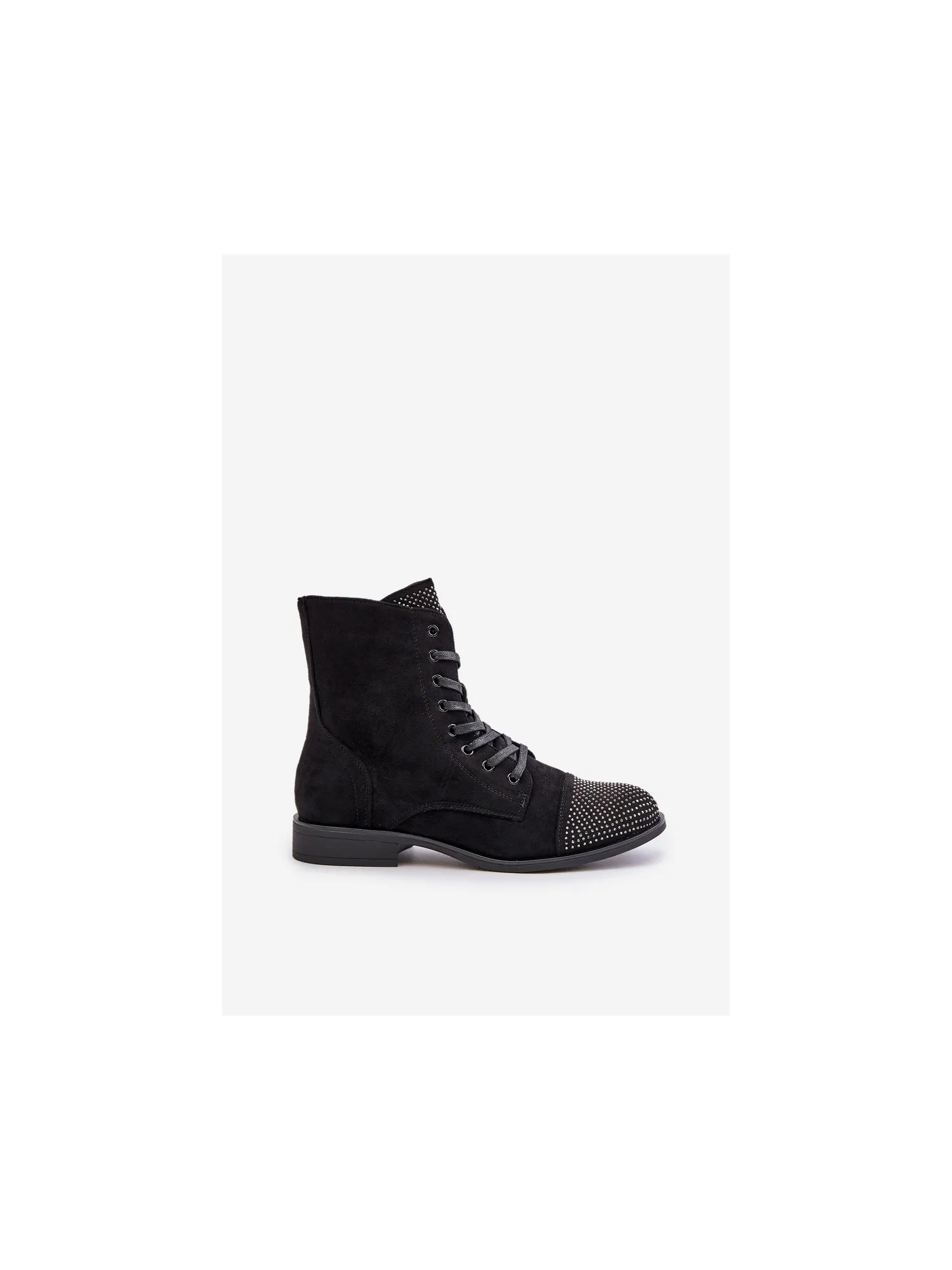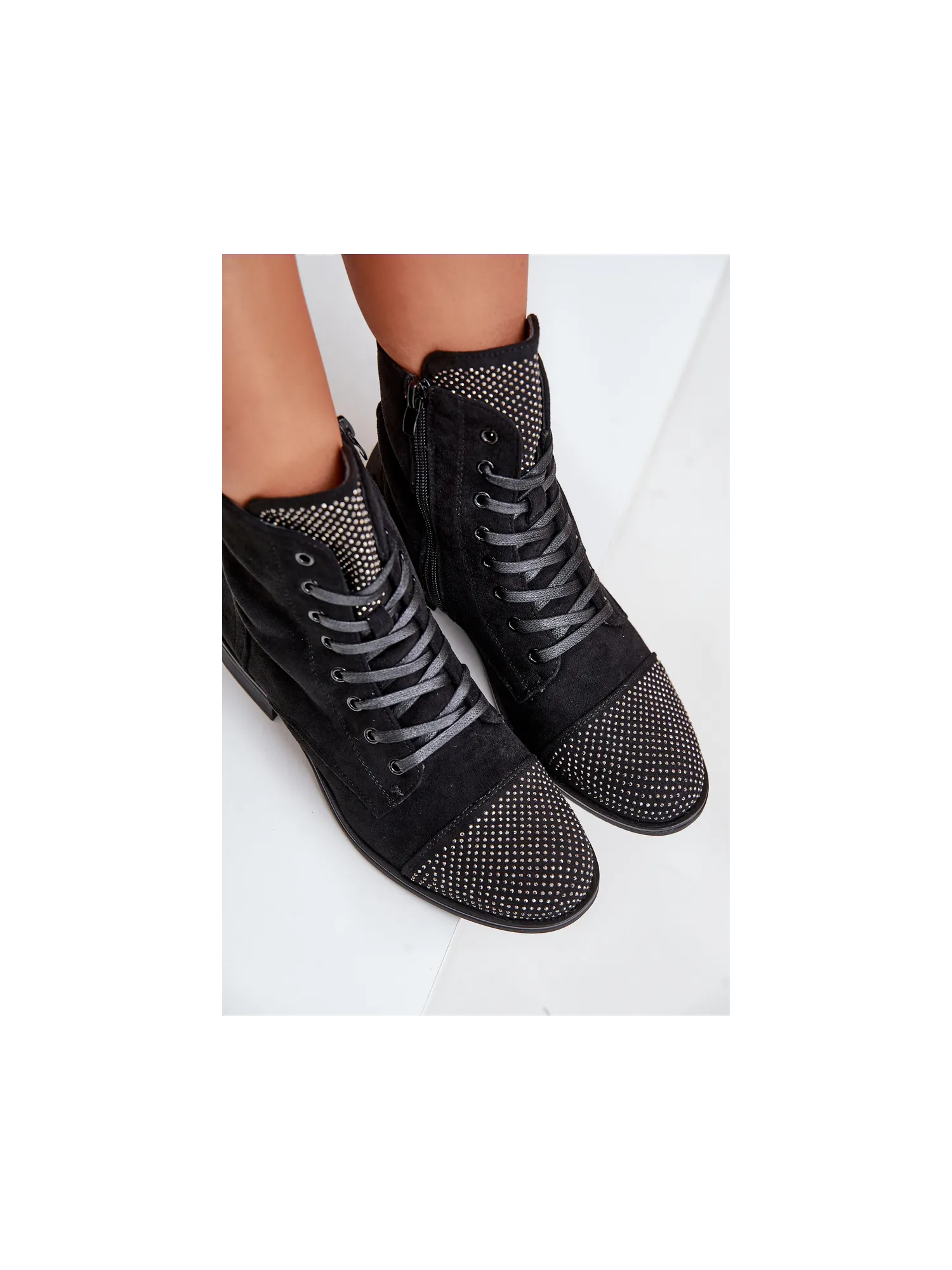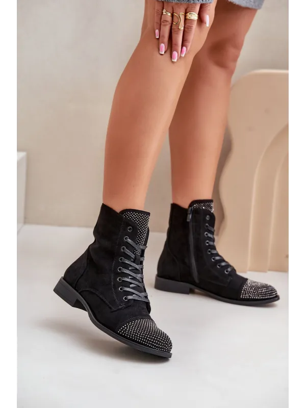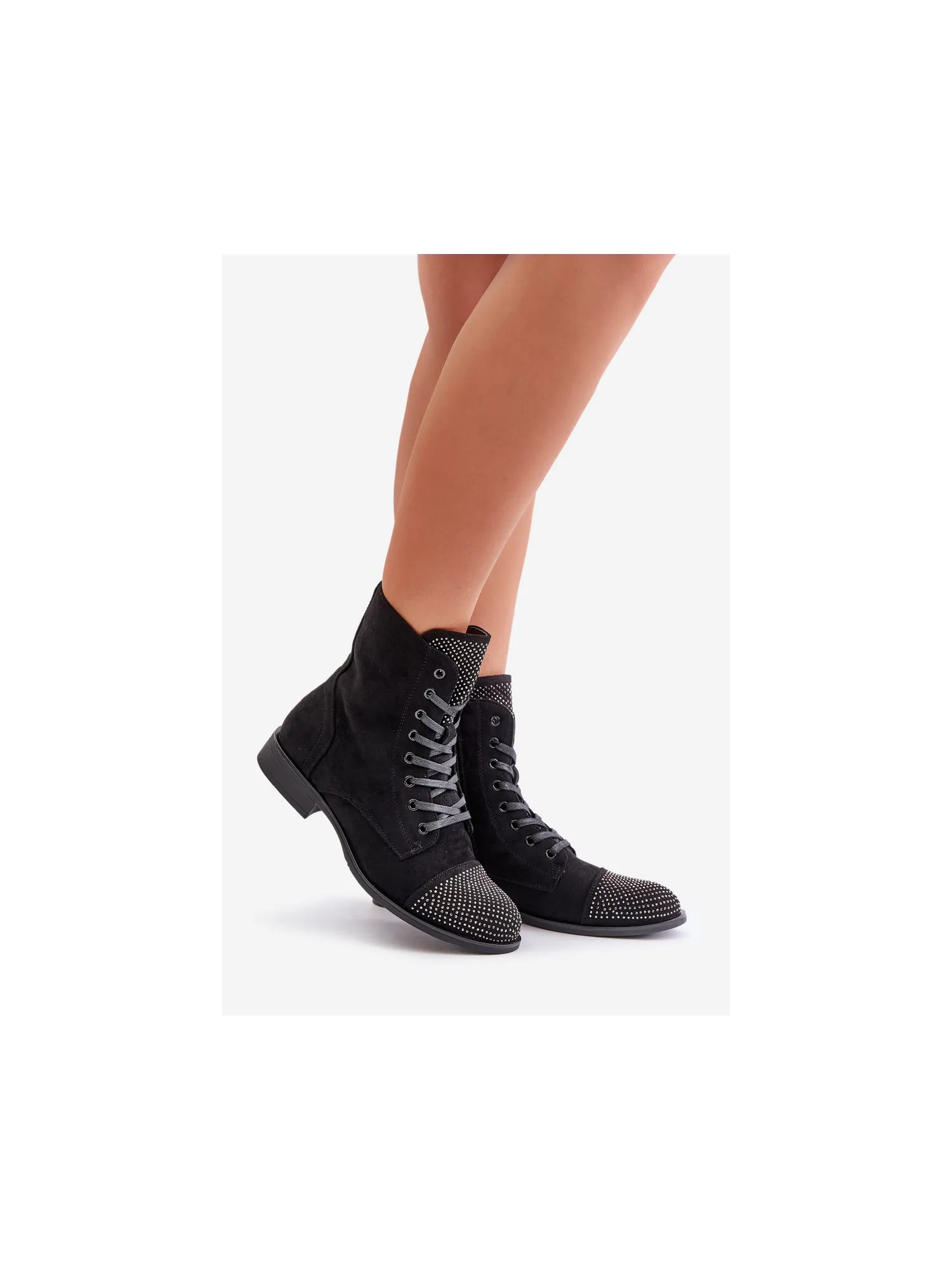 Embellished ankle boots with flat heel eco suede insulated black Ellieo