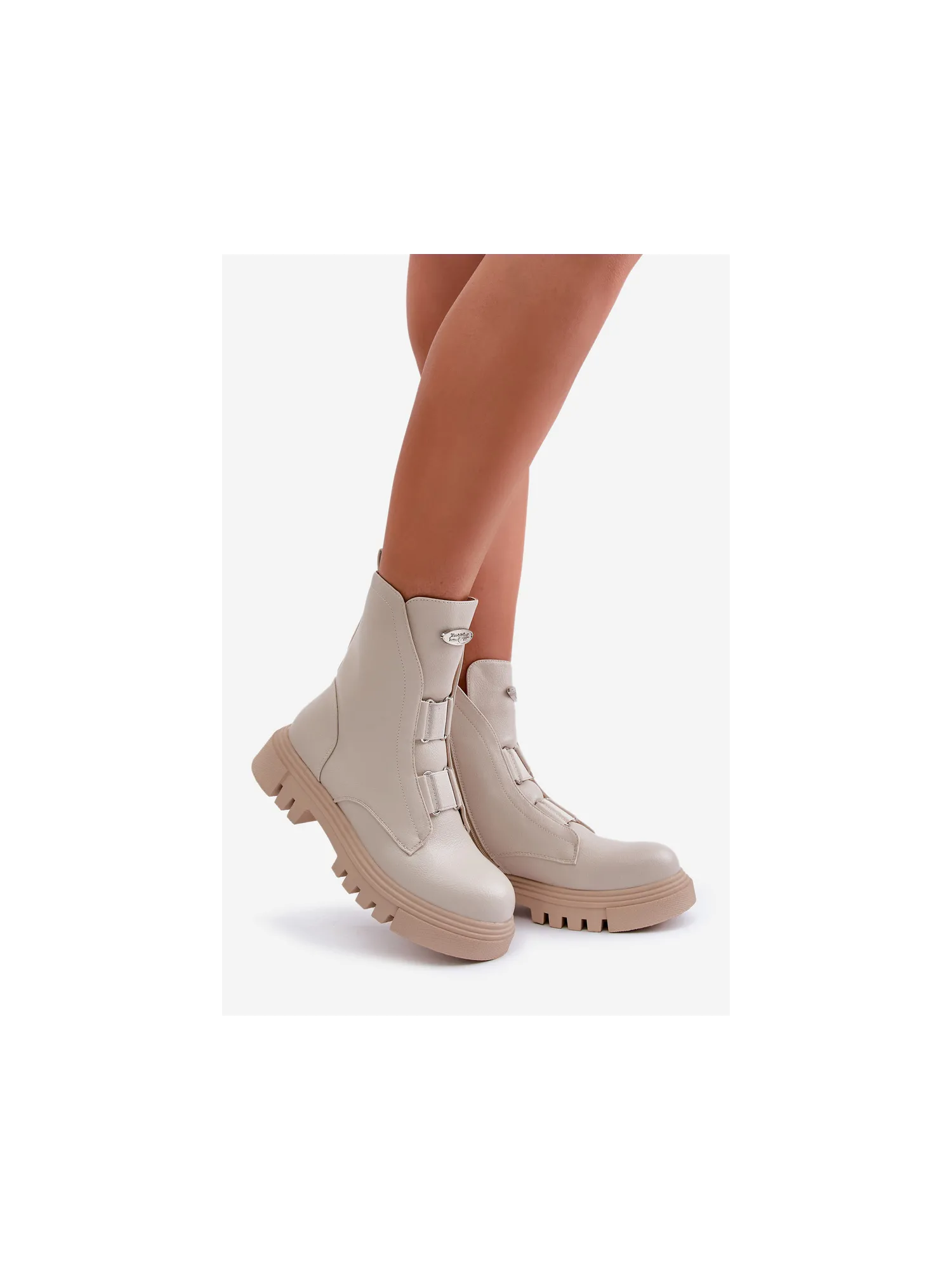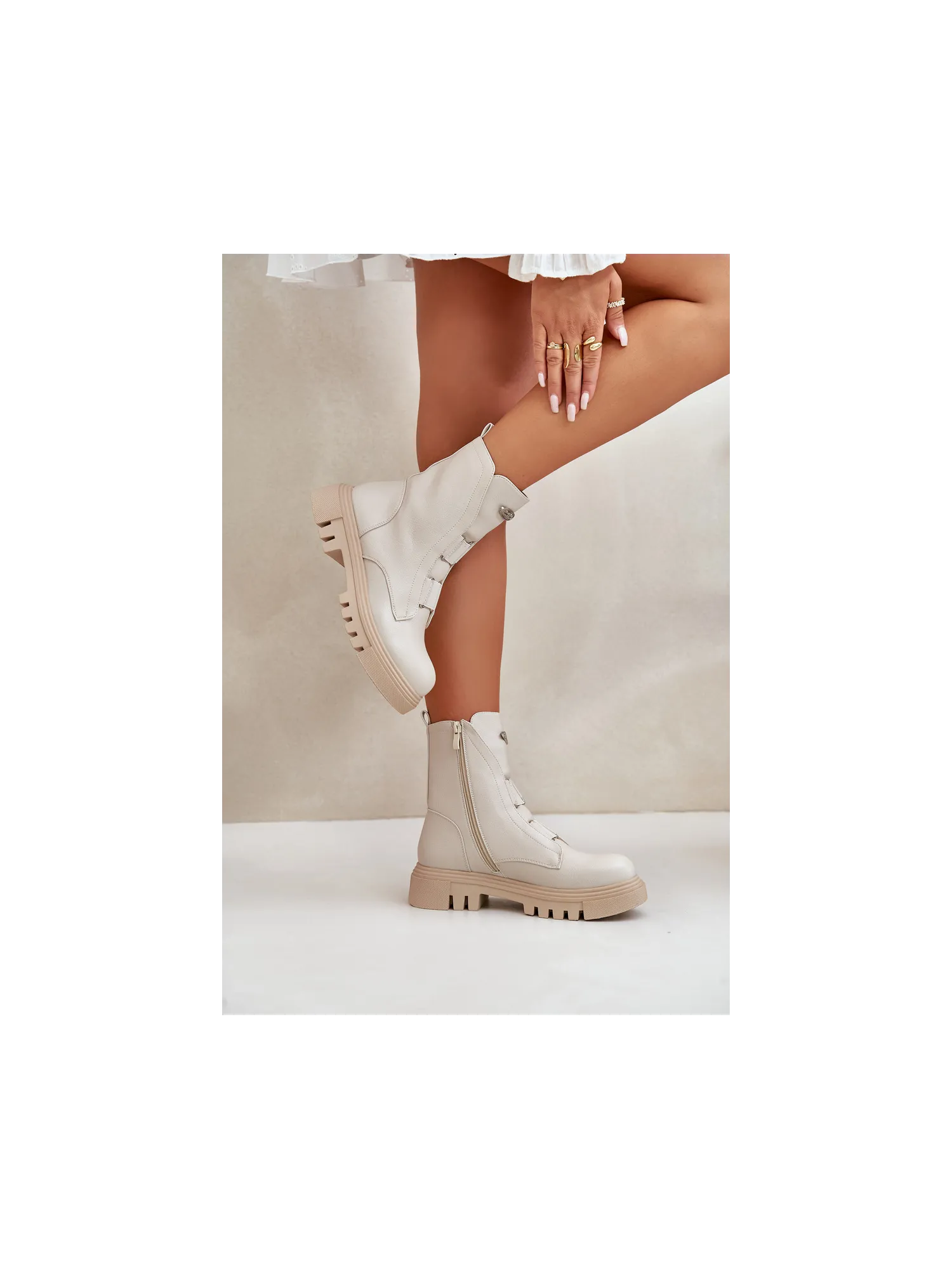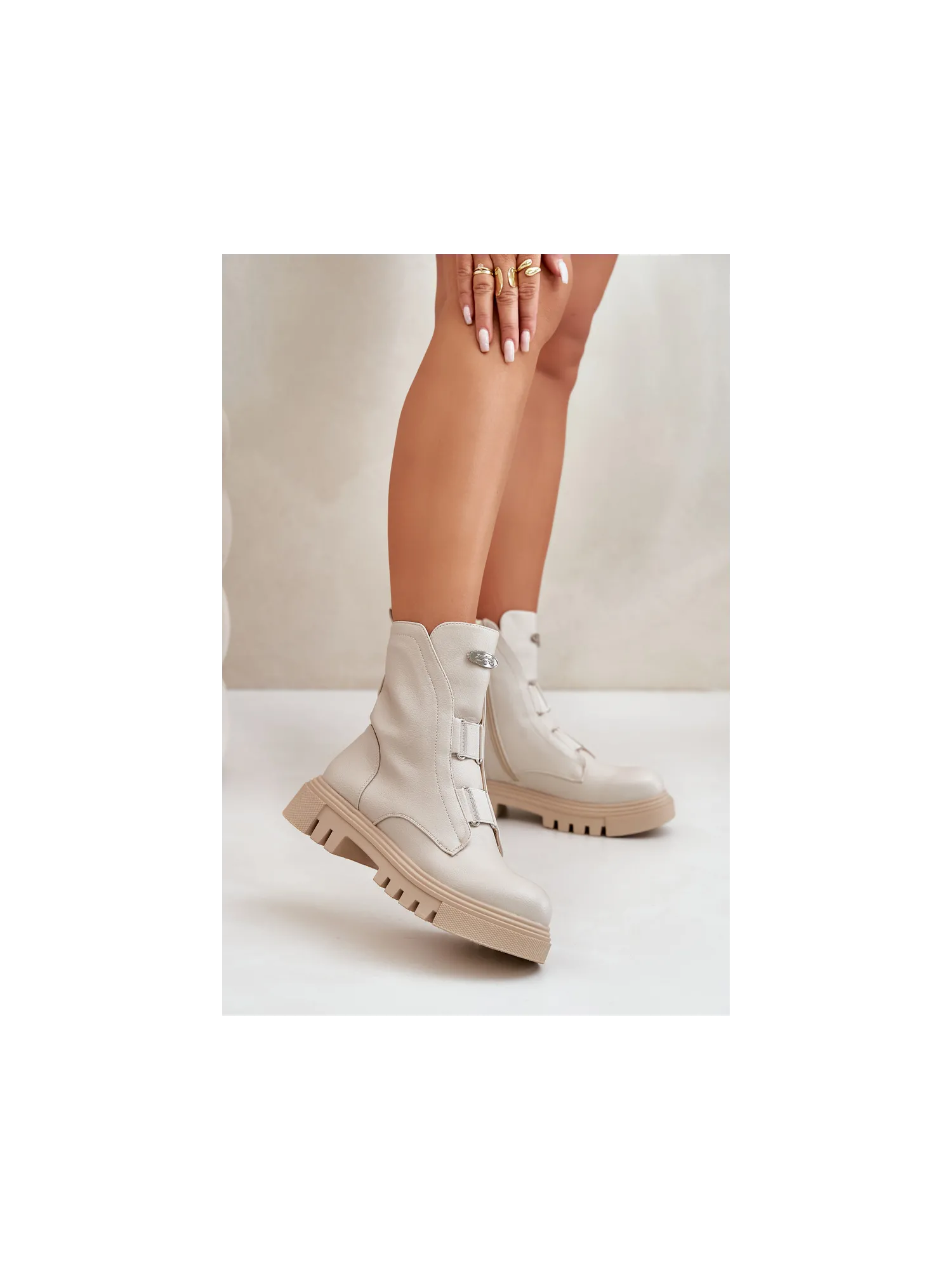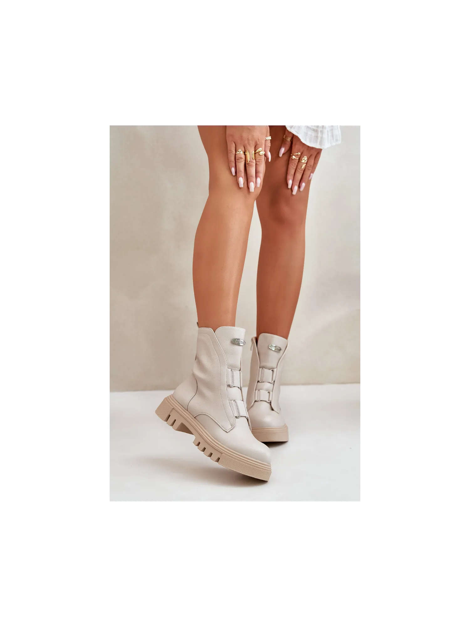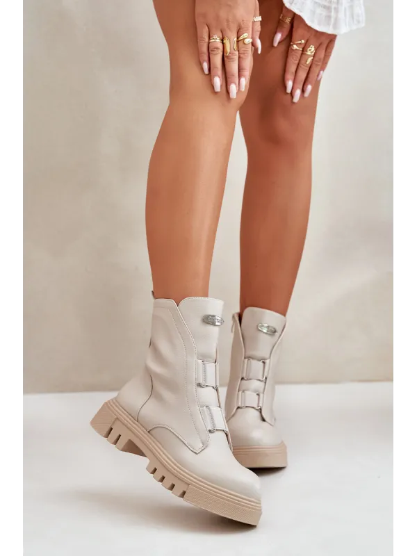 Fleece Lined Women's Worker Boots with Zip Eco Leather Light Beige Mailyra