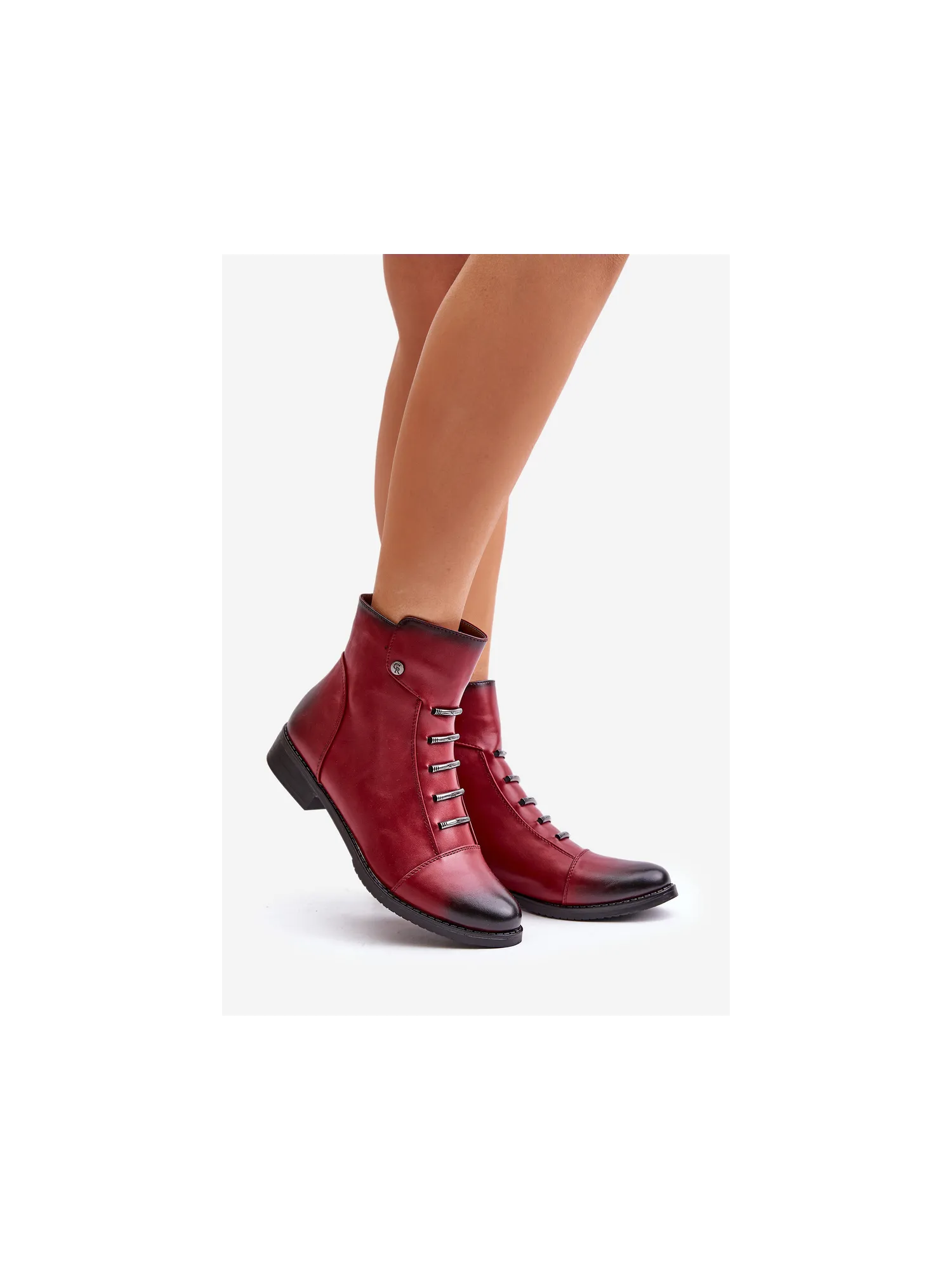 Boots by Jezzi made of eco leather that combine style with comfort. Set on a flat heel, with rounded toes, they provide everyday wearing comfort. The model is fastened with a zipper, making it easy to put on and take off. The interior is insulated with footwear fleece, ideal for cooler days. These boots are a great choice for autumn and winter outfits. When choosing a size, please refer to the size chart.